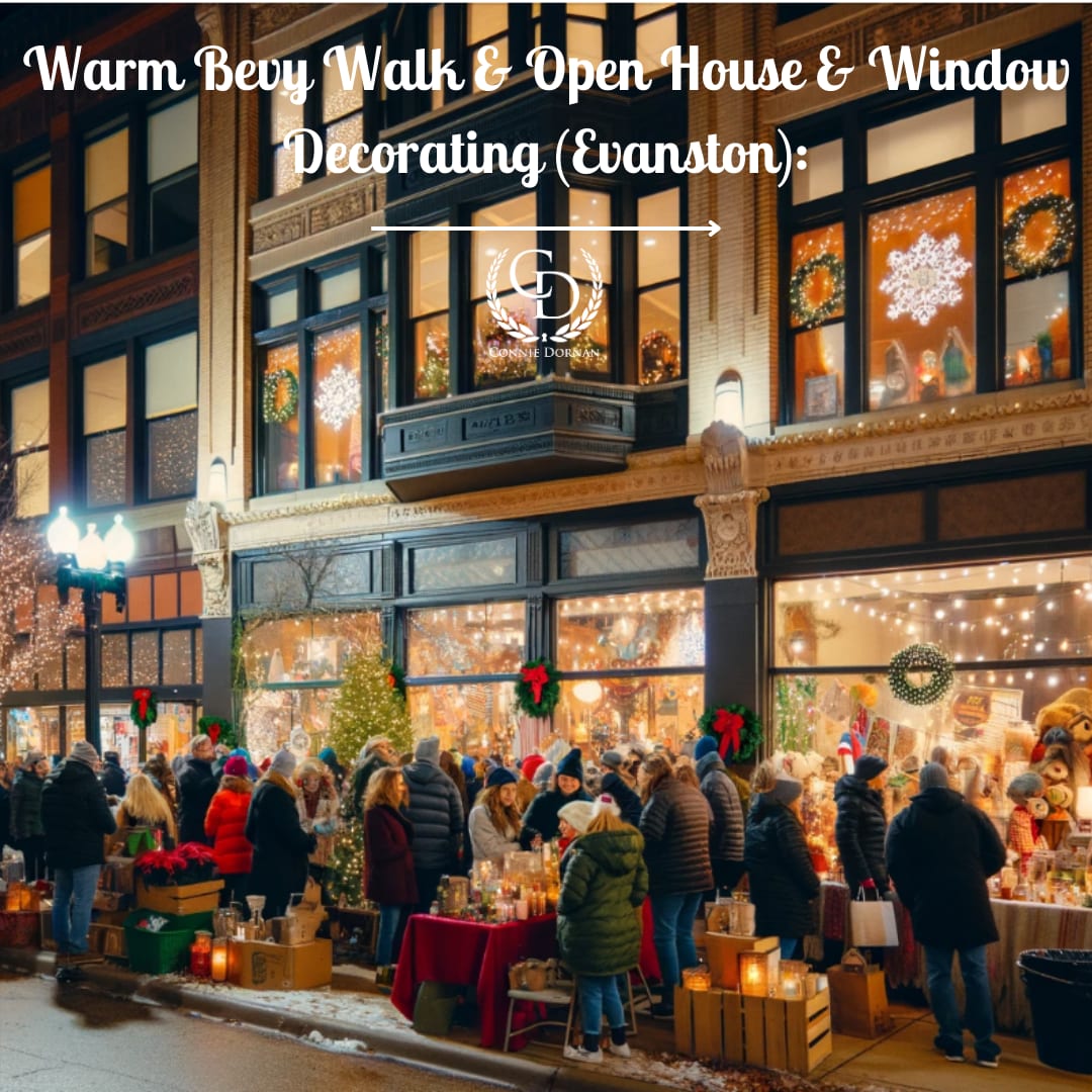 Warm Bevy Walk & Open House & Window Decorating (Evanston): On December 14, explore downtown Evanston's shops and restaurants, offering warm beverages and special deals.