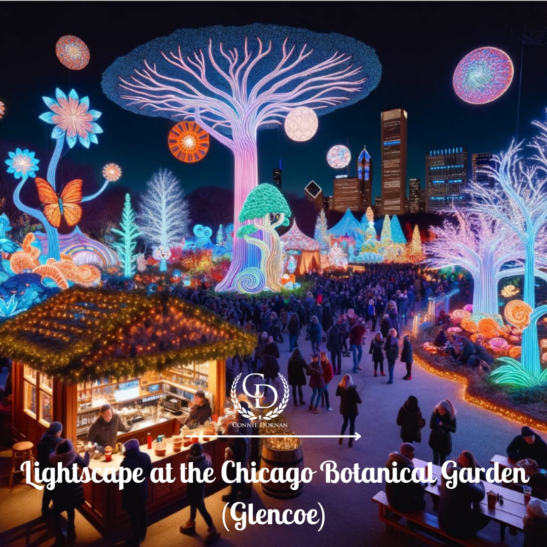Lightscape at the Chicago Botanical Garden (Glencoe): This after-dark experience from November 10 through January 7, 2024, features stunning light installations and interactive experiences.