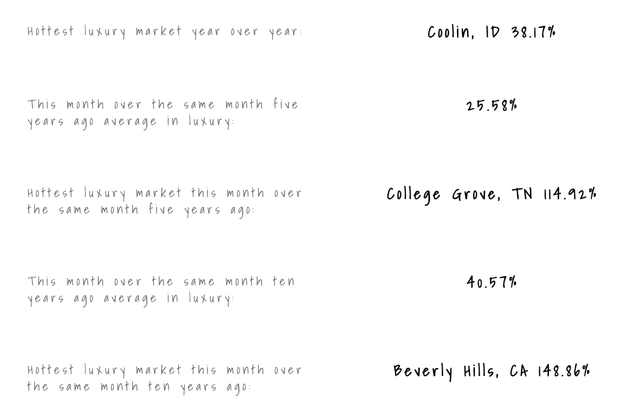 From Berman & Pollinger comes this revealing national comparison of how purchase prices compares over 10 years. Look out for the towns in Illinois and how they stack up against others in the country.