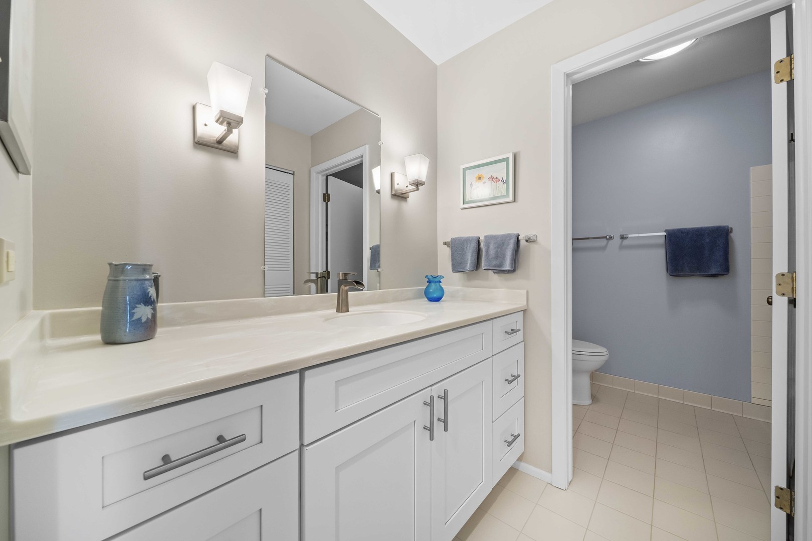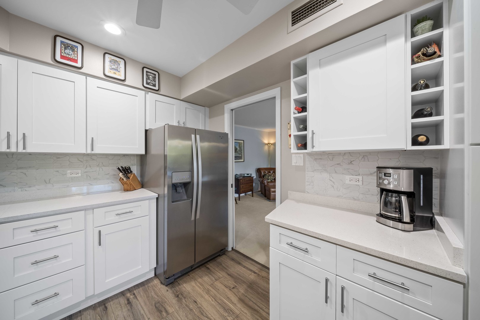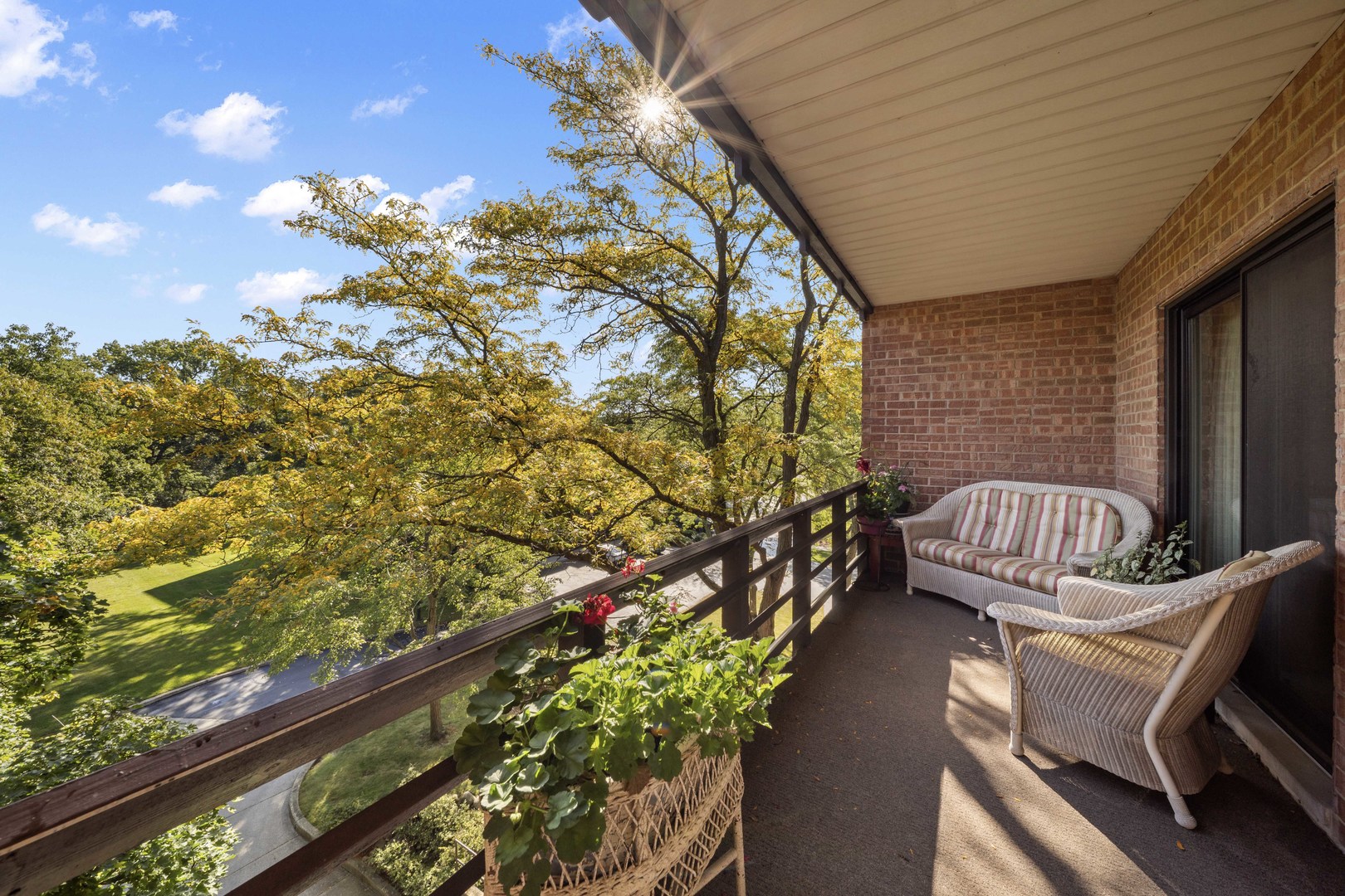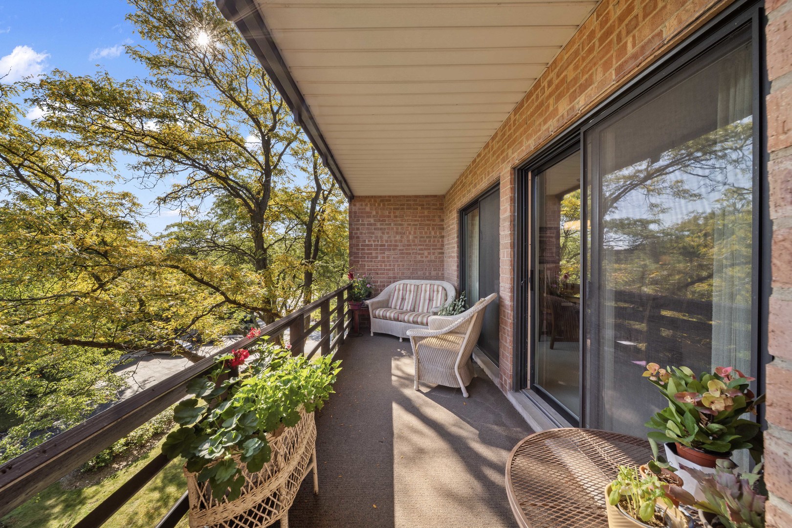 Welcome to Shermer Square, where timeless design meets modern updates in this spacious 2-bedroom + den, 2-bath residence. With over 1,800 square feet of living space, this home has been reimagined with thoughtful upgrades that elevate both function and style. A gracious foyer introduces the interiors, leading to expansive living and dining rooms anchored by a brick-surround fireplace and seamless access to the private balcony overlooking serene treetop views. The updated kitchen shines with quartz countertops, shaker cabinetry with pull-outs, sleek tile backsplash, and a full suite of Whirlpool stainless appliances-designed for both everyday ease and entertaining. The den/office, with custom built-ins, offers a versatile retreat for work or reading, while the private wing showcases a generous second bedroom and a refined hall bath. The primary suite is a true sanctuary with a custom Closets by Design walk-in, crown molding, and a beautifully remodeled bath featuring a walk-in shower with dual sprays and seating. Additional highlights include newer flooring, Corian vanities, newer HVAC, a fireplace refresh with remote and glass doors, in-unit laundry, and consistent design details carried throughout. Lifestyle amenities complete the package: heated garage parking plus ample visitor spaces, a dedicated storage locker, lushly landscaped grounds, and a sparkling outdoor pool. The association provides exterior maintenance, water, snow removal, and lawn care-ensuring a low-maintenance, turnkey experience. All this within moments of downtown Northbrook's best-walk to the Metra, Village Green, Sunset Foods, shops, dining, and the library. A rare opportunity to live in one of the North Shore's most convenient and well-maintained communities, ready for you to move right in!