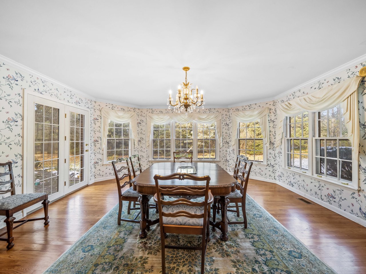 Request InfoPoised on a serene Northbrook street, this timeless residence blends classic architectural detail with warm sophistication and effortless functionality. A gracious foyer with hardwood floors and crown molding welcomes you to light-filled formal spaces-each with refined craftsmanship and thoughtful flow. The living room's gas fireplace, framed in brick with a stately wood mantel, sets the tone for gatherings, while the adjacent dining room sparkles beneath a crystal chandelier and opens to a brick patio through glass doors-an entertainer's dream. The kitchen offers Corian countertops, GE appliances including a double oven, and a sunny breakfast room framed by a bay window and walkout to the patio. A richly appointed family room with wood-beamed ceilings and parquet floors anchors the main level in warmth and character, complemented by a paneled office with built-ins for both productivity and retreat. A spacious mud/laundry room with skylight, ample storage, and a second refrigerator ensures practical ease for daily living. Upstairs, the primary suite offers a serene retreat with dual dressing areas, generous closets, and an en suite bath with pedestal sink and classic tile finishes. Four additional bedrooms, including one with hardwood floors and others with plush carpeting, share two well-appointed hall baths-each with neutral vanities and ceramic tile surrounds. Additional highlights include hardwood beneath the upper-level carpeting (excluding the primary suite),new roof (2025), 200-amp electrical service, 50-gallon Bradford White water heater (2023), a Carrier furnace(2025) with humidifier, sump pump with battery backup and more! A three-car garage with backyard access completes this beautifully maintained home-offering a seamless blend of form, function, and enduring appeal.