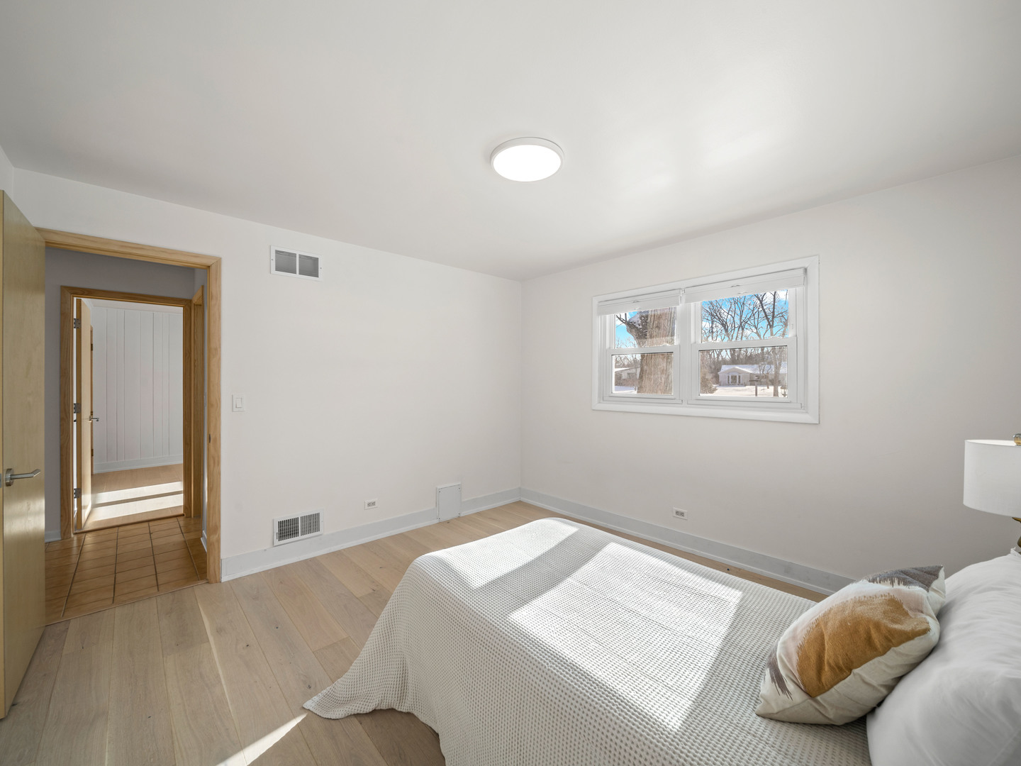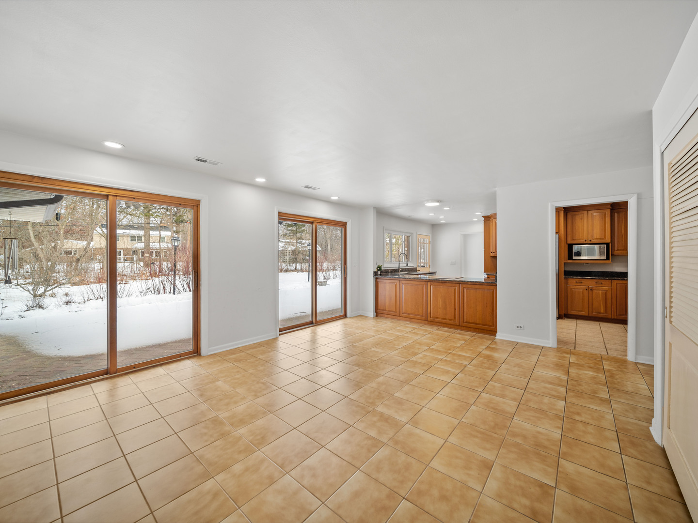 Set gracefully on a generous .6 acre wooded homesite, this refined and thoughtfully updated ranch delivers a seamless blend of enduring design and modern functionality, all anchored by a layout that lives beautifully on one level. A slate-tiled foyer with guest coat closet introduces interiors defined by clean lines, natural light, and purposeful finishes, flowing into a living room warmed by a wood-burning fireplace with stone surround and recessed lighting, while the adjoining dining room opens via sliding glass doors to an expansive brick paver patio, ideal for effortless indoor-outdoor entertaining. The kitchen is both practical and polished, featuring granite countertops, tile flooring, stainless steel appliance suite and direct access to the patio. The family room continues the home's easy livability with ceramic tile flooring, dual sliding glass doors to the yard, and generous storage, complemented by a discreet washer/dryer closet with LG appliances, utility sink, and shelving. The private bedroom wing is anchored by a spacious primary suite with hardwood flooring, dual double-door closets, and a spa-inspired bath with ample linen and storage closets. Three additional bedrooms, each with hardwood flooring, including one with patio access and another with a cedar closet, are served by a well appointed hall bath. Other highlights include: a three-car garage, newer roof(2024), a Generac generator, 200-amp electrical service, Lennox furnace with Aprilaire humidifier, Honeywell thermostat and water heater (2025). Just a stone's throw to the community pool, parks and located in award winning Stevenson High School district and District 103! Shopping, dining, golfing, recreation and access to highways are only minutes away. Designed for comfort, resilience, and understated sophistication, this is a home where thoughtful updates support an elegant, low-maintenance lifestyle amid a tranquil, private setting.