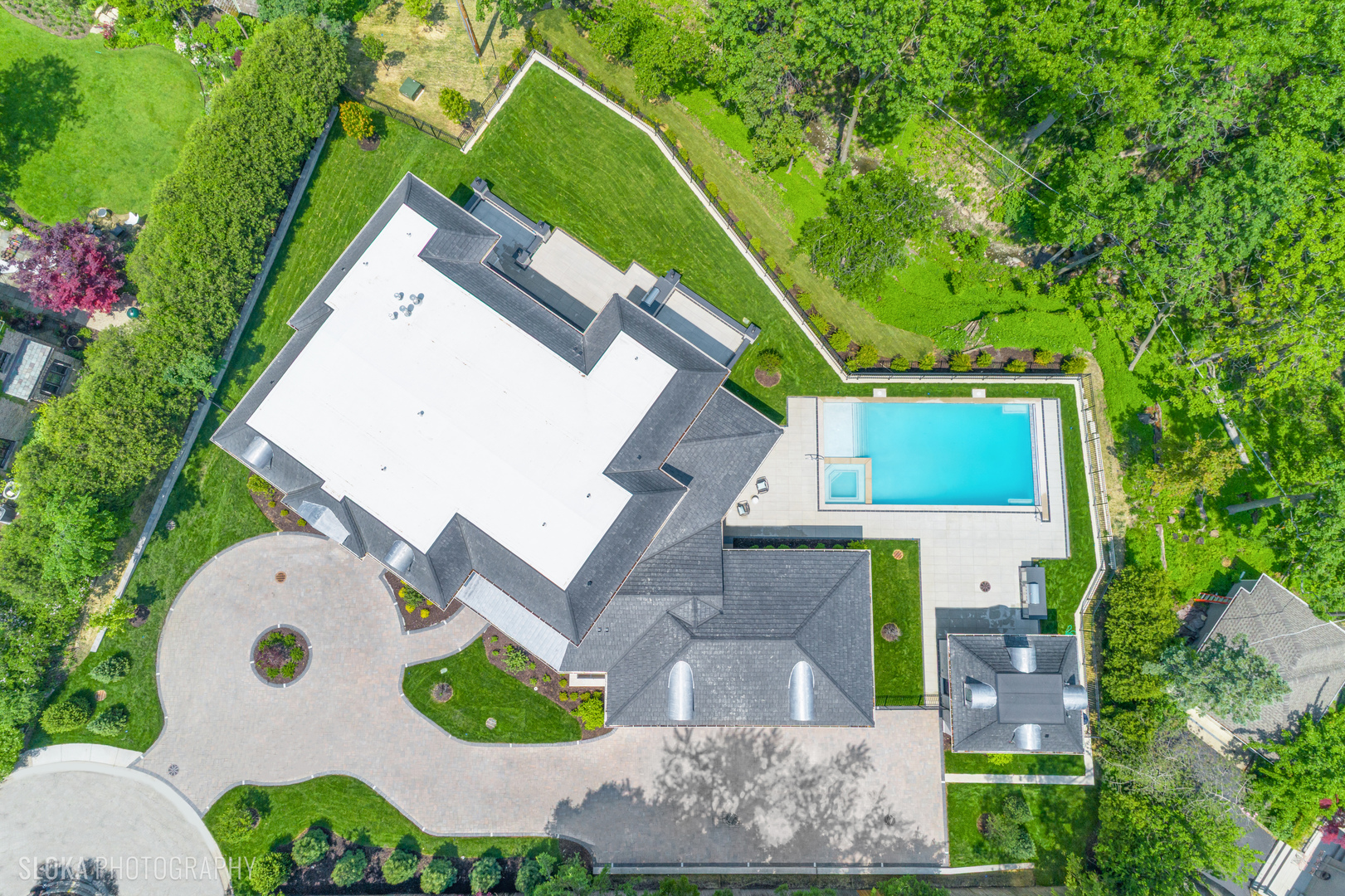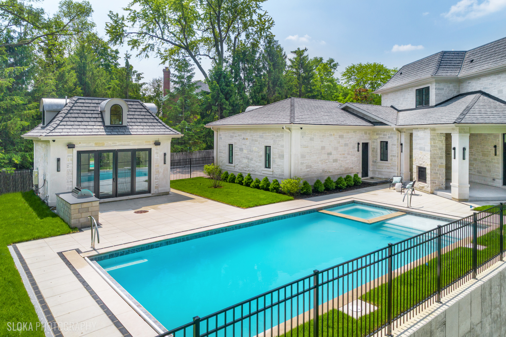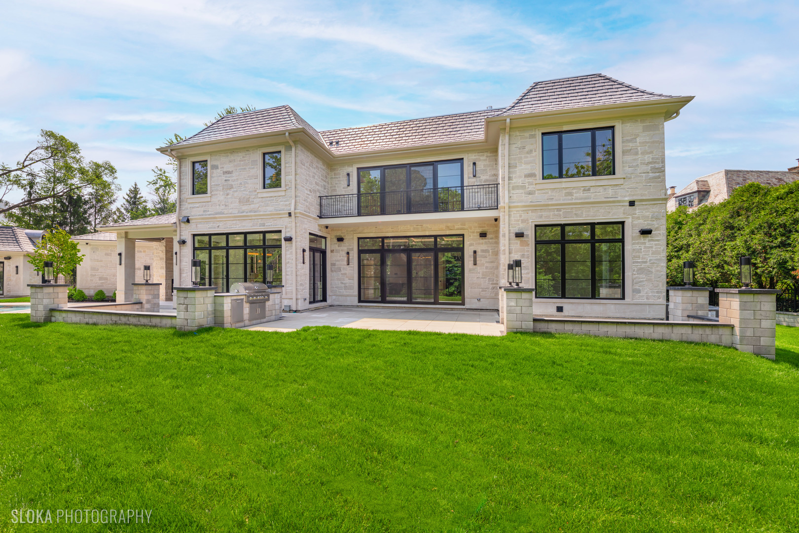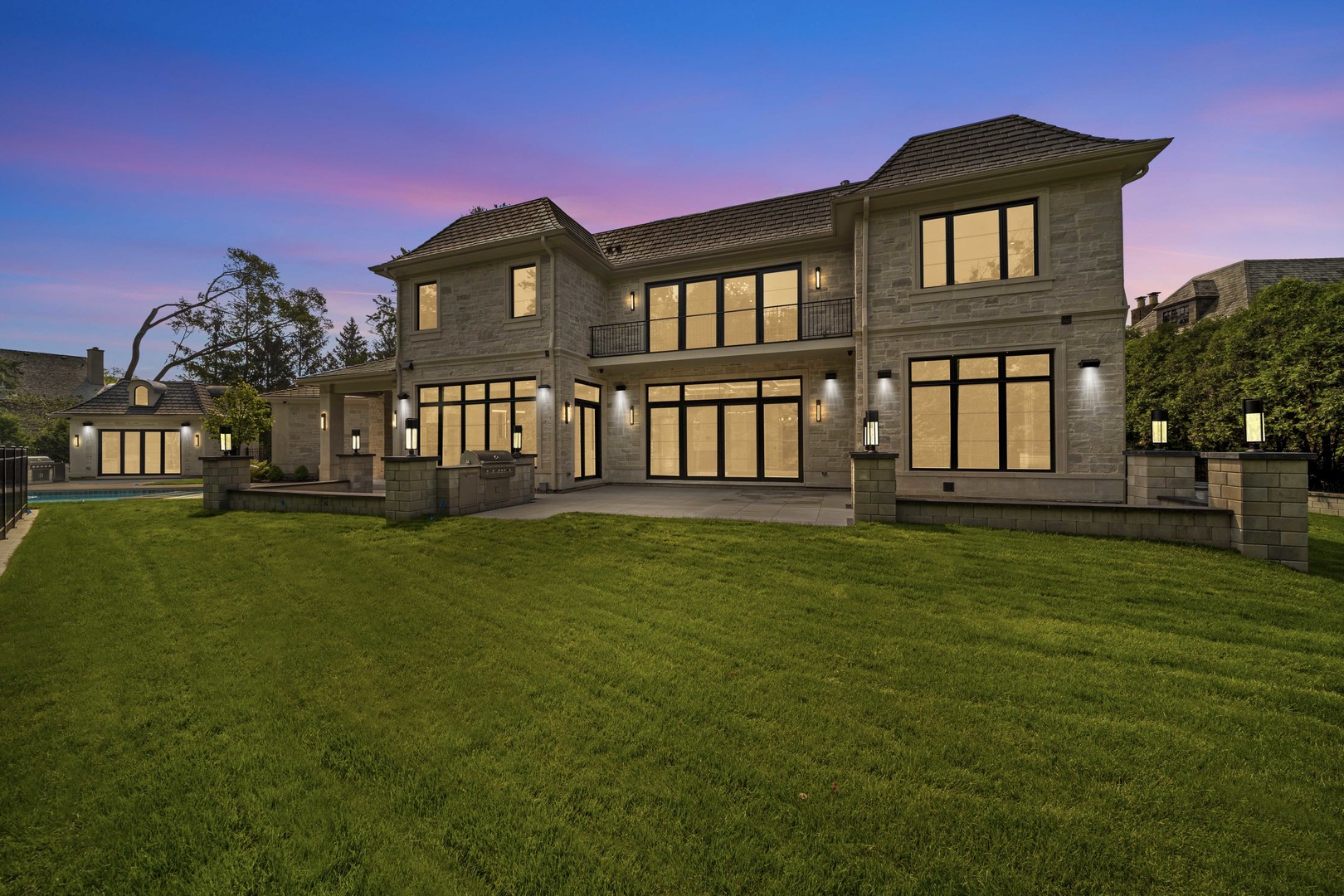 Nestled within the serene landscape of a cul-de-sac in Glencoe, this bespoke luxury estate, meticulously designed by a renowned designer, exudes timeless elegance and modern opulence. A symphony of stone and limestone, this new construction masterpiece offers an unparalleled lifestyle of refinement and sophistication. Beyond its stately facade, discover a wealth of amenities including a sparkling pool with a fully decked out pool house, two outdoor kitchens, outdoor fireplace, a four-car garage, elevator, and an indoor sports court. The main floor beckons with an expansive foyer leading gracefully into the Great Room, while the gourmet kitchen boasts double islands, SubZero refrigerator and freezer, Wolf double ovens, Wolf range, Miele built-in coffee maker, and two dishwashers. A breakfast area overlooks the lush yard and ravine, complemented by a butler's pantry with beverage/wine cooler, seamlessly flowing into the dining room. Additional main floor delights include a guest bedroom with en suite, an office, powder room, and a vast mudroom with full bath and laundry. Ascend to the second level where the grand primary suite awaits, featuring an 18x14 walk-in closet, sumptuous bathroom, and beverage center. Three more bedrooms, all with en suite baths and walk-in closets, ensure comfort and privacy. The lower level is an entertainer's haven, offering a recreation room, exercise room, guest bedroom with en suite, wet and dry saunas, theater room with 5.1 Surround Sound & Rockwool sound insulation, wet bar, and access to the indoor sports court. Additional highlights include a power generator, Brava roof tiles, white oak hardwood flooring, Control4 pre-wiring with iPad wall mounted controllers, custom closet organizers, and more! With its proximity to the Metra station, downtown Glencoe, Duke park, and acclaimed schools, this residence epitomizes luxurious living at its finest.