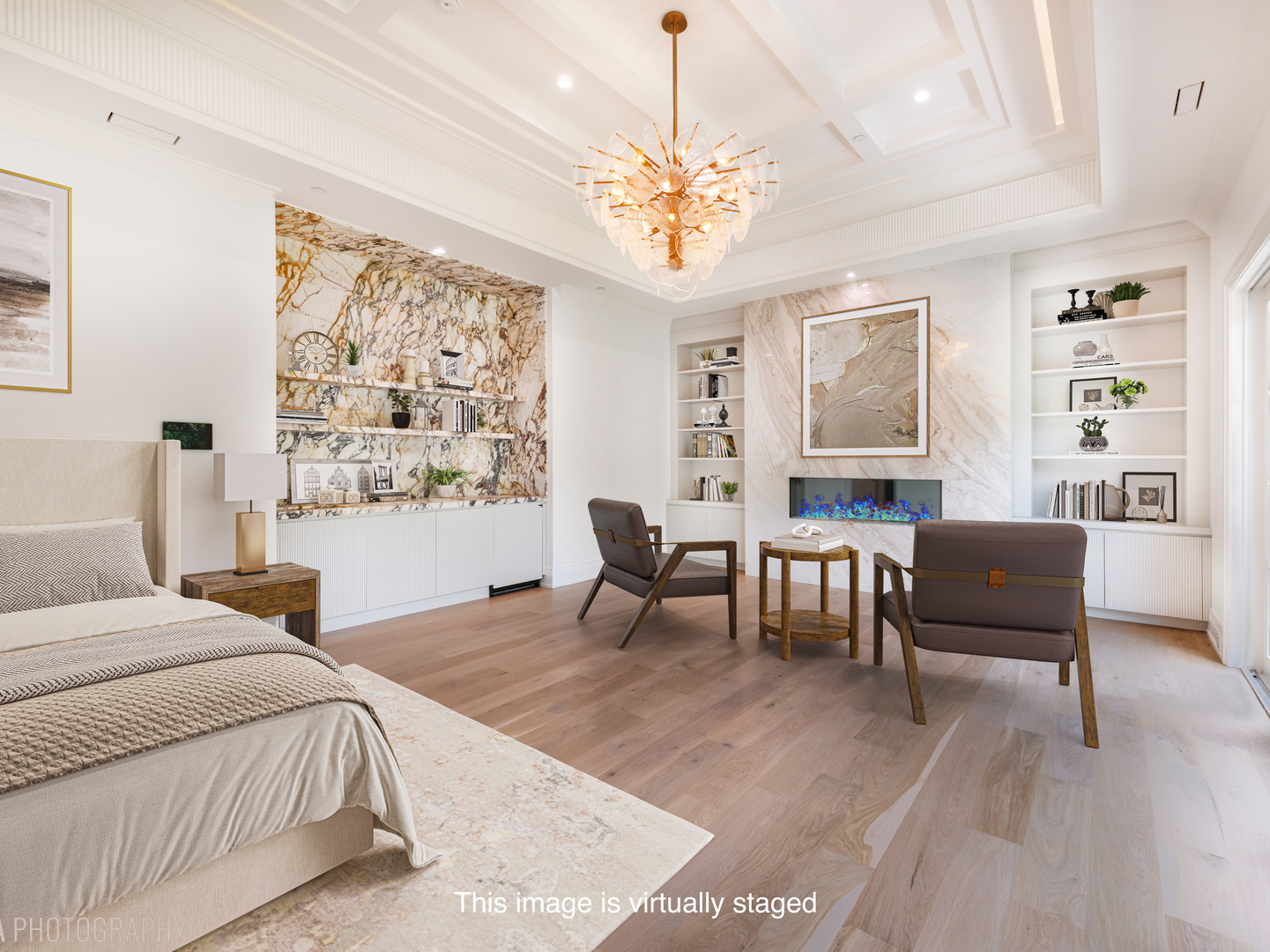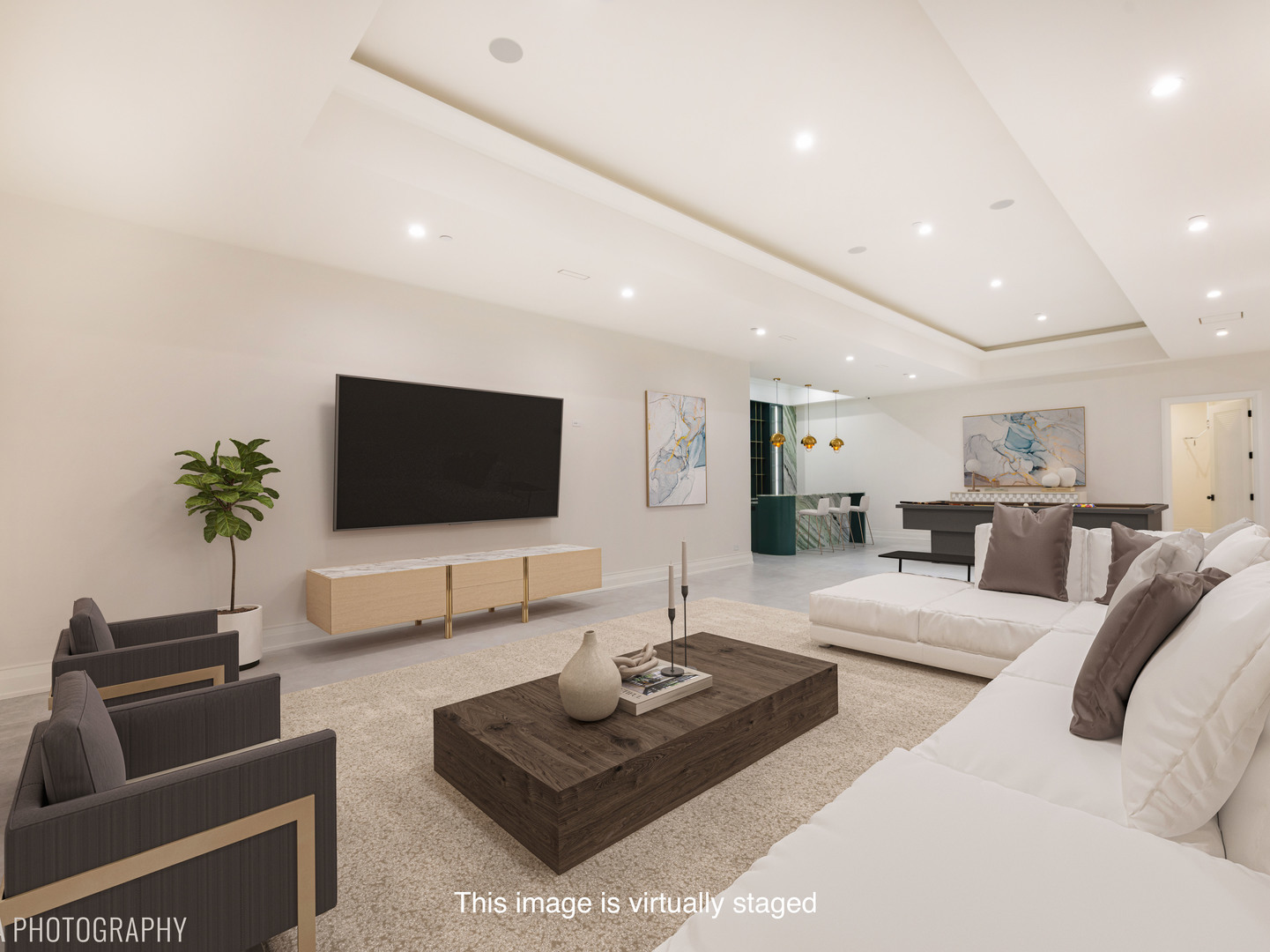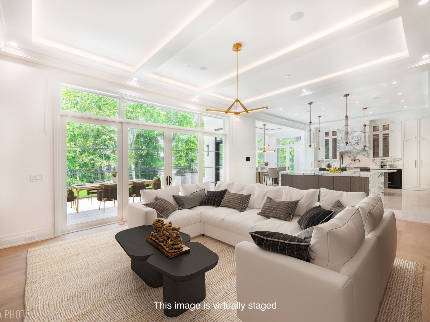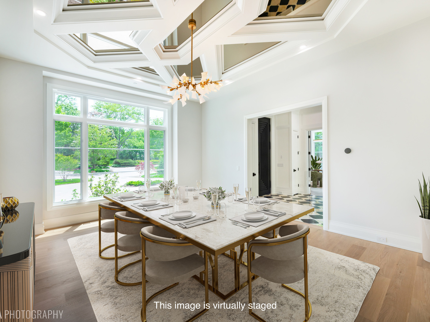 Nestled within the serene landscape of a cul-de-sac in Glencoe, this bespoke luxury estate, meticulously designed by a renowned designer, exudes timeless elegance and modern opulence. A symphony of stone and limestone, this new construction masterpiece offers an unparalleled lifestyle of refinement and sophistication. Beyond its stately facade, discover a wealth of amenities including a sparkling pool with a fully decked out pool house, two outdoor kitchens, outdoor fireplace, a four-car garage, elevator, and an indoor sports court. The main floor beckons with an expansive foyer leading gracefully into the Great Room, while the gourmet kitchen boasts double islands, SubZero refrigerator and freezer, Wolf double ovens, Wolf range, Miele built-in coffee maker, and two dishwashers. A breakfast area overlooks the lush yard and ravine, complemented by a butler's pantry with beverage/wine cooler, seamlessly flowing into the dining room. Additional main floor delights include a guest bedroom with en suite, an office, powder room, and a vast mudroom with full bath and laundry. Ascend to the second level where the grand primary suite awaits, featuring an 18x14 walk-in closet, sumptuous bathroom, and beverage center. Three more bedrooms, all with en suite baths and walk-in closets, ensure comfort and privacy. The lower level is an entertainer's haven, offering a recreation room, exercise room, guest bedroom with en suite, wet and dry saunas, theater room with 5.1 Surround Sound & Rockwool sound insulation, wet bar, and access to the indoor sports court. Additional highlights include a power generator, Brava roof tiles, white oak hardwood flooring, Control4 pre-wiring with iPad wall mounted controllers, custom closet organizers, and more! With its proximity to the Metra station, downtown Glencoe, Duke park, and acclaimed schools, this residence epitomizes luxurious living at its finest.
