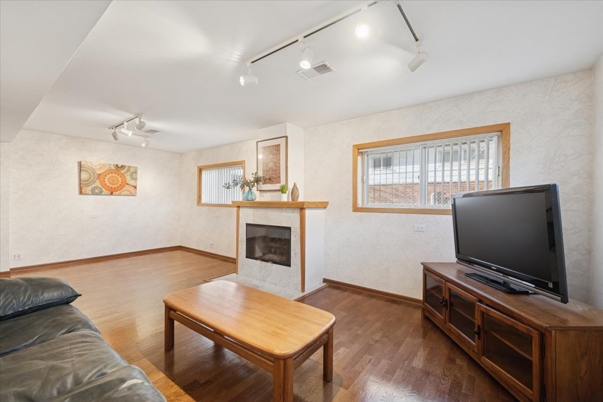 Set in highly sought-after District 28 and directly across from Anetsberger Golf Course, Techny Park, and miles of walking trails, this well-located residence offers an exceptional opportunity to personalize a home in one of the area's most desirable settings, where daily life is framed by open green space, recreation, and easy access to nature. The main level features a combined living and dining room with hardwood flooring and track lighting, flowing into a sunlit kitchen finished with tile flooring, a warm wood-look acoustic tile ceiling, skylight, granite countertops, under-cabinet lighting, and a full complement of appliances, while the adjacent breakfast nook-also with tile flooring -provides convenient access to the driveway and carport. The second level offers three bedrooms, all with hardwood floors and double-door closets, a skylit landing, hall linen storage, and a neutral hall bath. The lower level expands the living space with a recreation room anchored by a gas fireplace with marble surround, a fourth bedroom with a distinctive faux brick accent wall, and a second full bath featuring a jacuzzi tub/shower and ample storage. A full basement houses laundry, utility, and storage areas with cabinetry and countertops, along with updated mechanicals including a sump pump with battery backup, overhead sewer pump, and major systems that provide peace of mind. Additional highlights include a concrete driveway, dog run, huge garage with 1 car entry door but can accommodate two cars, south-facing front windows that bring in natural light, and a home that has been thoughtfully maintained over the years-offering a solid canvas for buyers eager to bring their own style and vision to a location that simply cannot be replicated.
