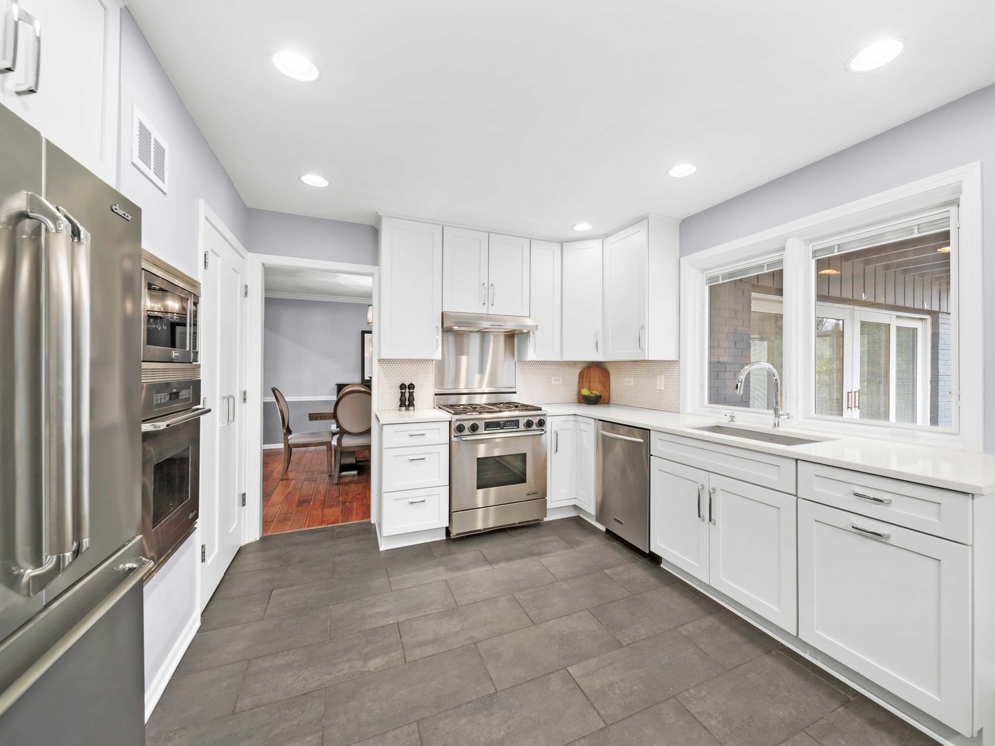 The layout strikes that rare balance: open when you want it, defined where you need it, and designed to feel as good as it looks. A polished foyer with porcelain tile and generous storage sets the tone, leading into sunlit living and dining spaces with crown molding and clean, timeless finishes, equally suited for hosting or just hanging out. The kitchen anchors the home with quartz countertops, a penny tile backsplash, and a premium appliance package, all centered around an island that naturally becomes the place everyone gathers. From there, the eating area and expansive family room, with a gas-start fireplace, flow effortlessly out to the patio, while a separate great room with its own access to the yard gives you flexibility to spread out, entertain, or reimagine the space entirely. A true main-level office, complete with built-ins, offers a great work from-home setup, and the mudroom/laundry area is exactly where you want it, functional, tucked away, and with direct access outside. Upstairs, the huge primary suite delivers on both space and storage, with multiple closets including a well-organized walk-in, and an en suite bath featuring dual vanities, a Whirlpool tub, and a steam shower that feels like a daily escape. Three additional bedrooms are well-proportioned with thoughtful storage, supported by updated, stylish hall baths. The finished lower level adds even more versatility with a large recreation space, built-ins, and plenty of storage, ideal for movie nights, workouts, or play. With key updates already handled, including mechanicals, roof, and a renovated kitchen, this is a move-in ready home. Set on a property with a concrete driveway and inviting outdoor space, it's the kind of home that simply works. Best of all, it is located in District 30 with award winning schools, a stone's throw to Greenview Park and just minutes to shopping, dining, entertainment, highway, Metra and more!