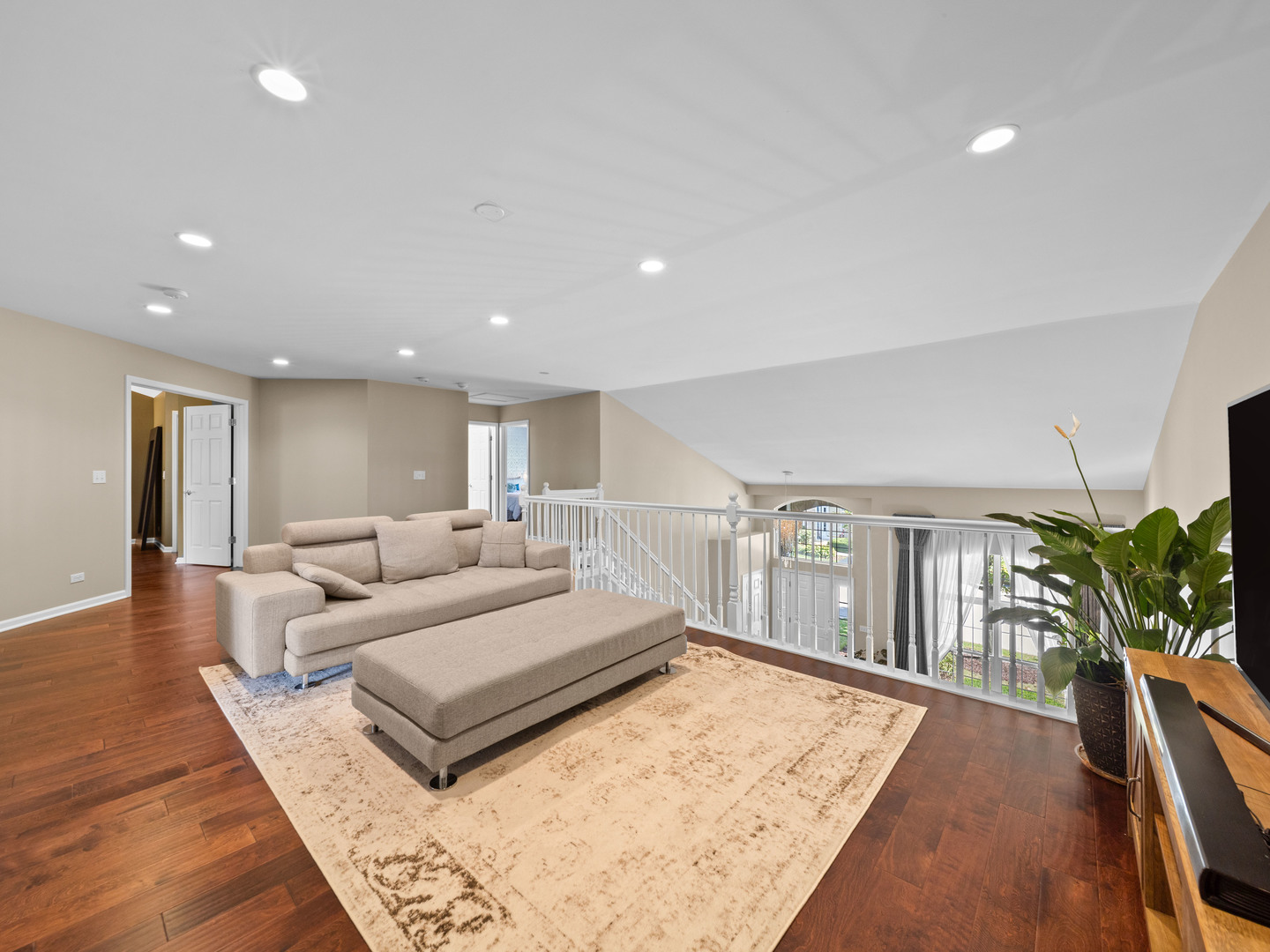 Welcome to this rarely available, largest model in the highly sought-after Ivy Club within District 27! This beautifully updated townhome perfectly combines elegance with modern comfort. A grand two-story foyer welcomes you in, with a sparkling crystal chandelier and gleaming hardwood floors setting the tone for the refined design found throughout. Vaulted ceilings and grand windows open to formal living and dining rooms accented by detailed millwork, hardwood flooring, and a convenient wet bar-ideal for entertaining! The updated kitchen features granite countertops, newly refinished cabinetry, premium stainless steel appliances, pantry closet, and a central island, offering plentiful counter space and abundant storage! A bright breakfast nook opens to a private deck for seamless indoor-outdoor living. The inviting family room offers a warm and comfortable gathering space with recessed lighting and hardwood floors. Completing the main level is a stylish and modern half bath and well-appointed laundry room. Upstairs, the spacious primary suite offers a double-door entry, dual walk-in closets with custom built-ins, and a spa-inspired bath with dual granite vanities, soaking tub, and separate shower. Two additional bedrooms with custom closets, a versatile loft overlooking the living room, and an updated hall bath complete the upper level. The finished basement adds more exceptional living space with a large recreation room, office or additional bedroom, workout area, and extra storage for all your needs year round. Additional highlights include a recently renovated deck, updated mechanicals and attached two-car garage. Recent HOA updates include roof, gutters, deck, and repaired and repainted siding. Enjoy low-maintenance living in one of Northbrook's premier communities-where quality craftsmanship, thoughtful updates, and an unbeatable location make this home truly exceptional!