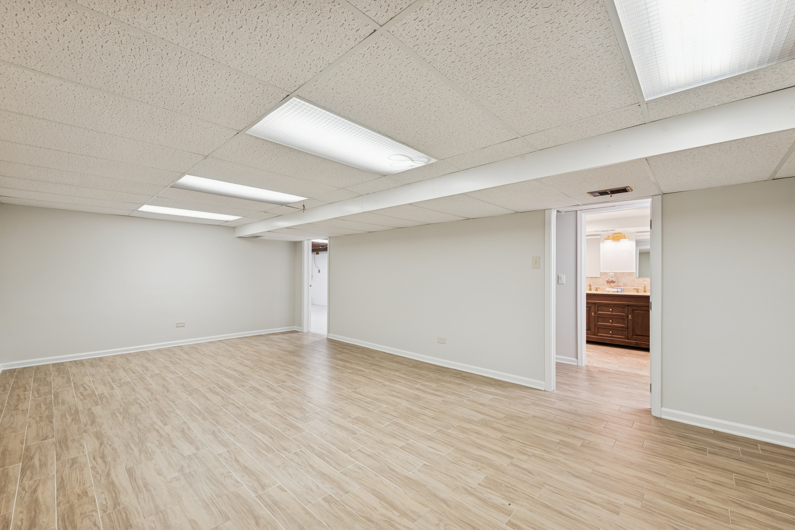 Set within the sought-after enclave of Indian Hill Estates, this refined ranch residence presents an elegant, thoughtfully updated interior with a seamless blend of timeless finishes and modern comfort. A porcelain-tiled foyer with double guest coat closet opens to graciously proportioned living and dining spaces highlighted by refinished hardwood floors, two gas fireplaces, and French doors that invite natural light and effortless indoor-outdoor flow. The kitchen is both polished and practical, appointed with granite countertops, hardwood flooring, Whirlpool double ovens, JennAir cooktop with downdraft, stainless steel appliances, pantry storage, and an adjacent eating area ideal for daily living and entertaining alike. The family room offers a warm gathering space with built-in bookshelves and direct access to the backyard, while a well-designed mudroom/laundry room with sliding glass doors enhances everyday functionality. The main-level primary suite is a private retreat featuring dual closets and a newly redesigned spa-inspired bath with porcelain tile, pebble-floor shower, and refined fixtures, complemented by three additional bedrooms, a refreshed hall bath, and an updated powder room. The finished lower level expands the living experience with a recreation room, bedroom, full bath with dual vanity and travertine finishes, and generous storage. Notable improvements include newly refinished hardwood floors and updated entry tile (2026), renovated baths, Marvin four-panel French doors, dual furnaces, sump pump with battery backup, 200-amp electrical service, dog run and extensive system updates. This home offers a turnkey opportunity defined by comfort, enduring appeal and located just minutes to the Metra, I-94, award winning schools, shopping, dining, recreation & more!