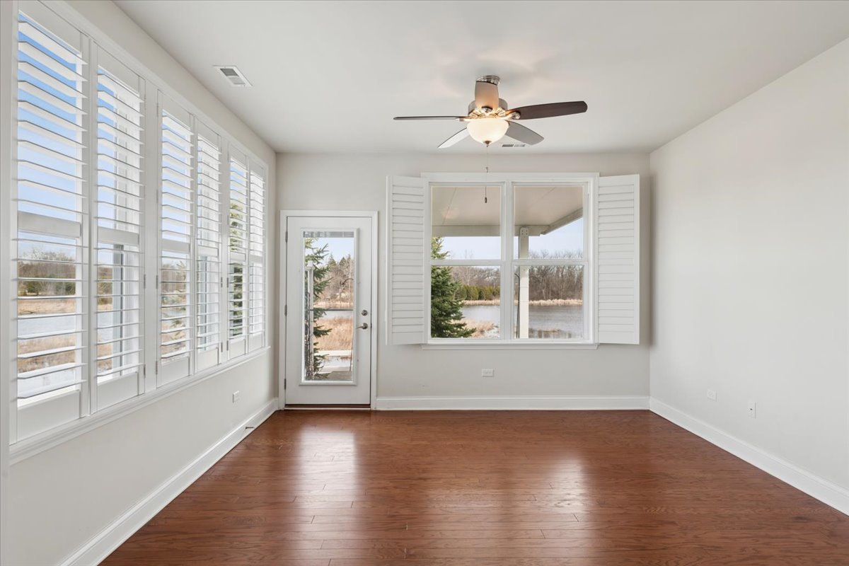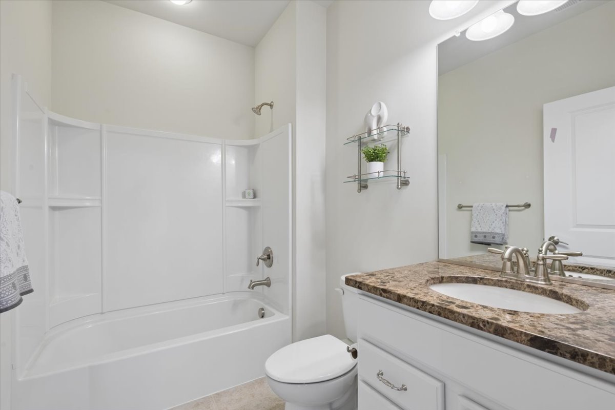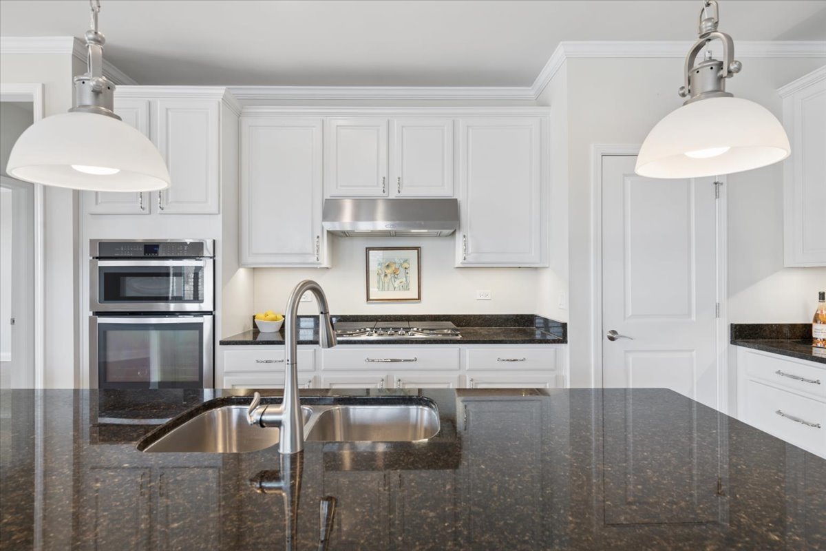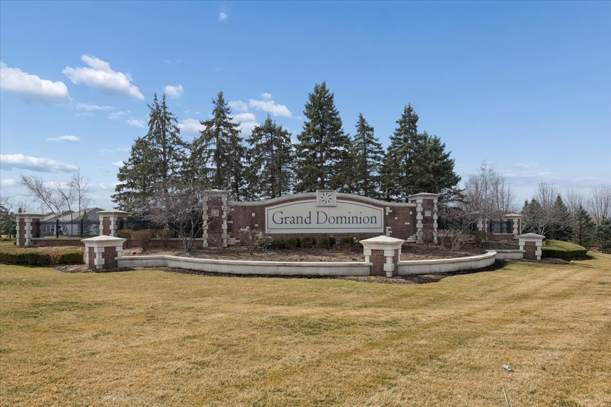 Nestled within the coveted, maintenance-free enclave of Grand Dominion, this impeccably maintained residence offers an effortless blend of sophistication, comfort, and refined everyday living. A gracious foyer welcomes you with rich hardwood flooring, elegant paneled wainscoting, crown molding, and soft recessed lighting, setting a tone of understated luxury that carries throughout. The thoughtfully designed floor plan unfolds into beautifully proportioned living and dining spaces, ideal for both intimate gatherings and seamless entertaining. At the heart of the home, the chef's kitchen is appointed with granite countertops, a full suite of stainless steel appliances, including a Whirlpool oven, microwave, and five-burner cooktop, along with a Broan Elite hood and Frigidaire Gallery refrigerator. An oversized island with seating, under-cabinet lighting, and abundant cabinetry create a space that is as functional as it is inviting. The adjoining family room is anchored by a Heatglo fireplace with a granite surround and wood mantle, offering a warm and inviting ambiance, while the sun-drenched sunroom, complete with plantation shutters, opens to a private outdoor retreat featuring both covered concrete and brick paver patios, perfect for morning coffee or evening relaxation. The primary suite serves as a tranquil sanctuary, highlighted by hardwood floors, crown molding, and a spa-inspired bath with dual vanities, granite countertops, a beautifully tiled shower, and a thoughtfully designed walk-in closet. Two additional bedrooms, each with hardwood flooring and plantation shutters, provide flexibility for guests, home office, or lifestyle needs, complemented by a well-appointed hall bath. Everyday living is enhanced by a dedicated laundry room with LG washer and dryer, utility sink, and storage, along with a functional mudroom offering additional organization. Other highlights include: Nest thermostat, plantation shutters, garage storage organizers and a 2019 AO Smith water heater. The exterior presents timeless curb appeal, a charming brick paver front porch and walkway, and an expansive driveway leading to a 2.5-car garage with shelving and workspace. Set within a premier 55 plus community known for its low-maintenance lifestyle and resort-like amenities, this home offers a rare opportunity to enjoy elegant living with ease, where every detail has been thoughtfully curated for both comfort and style.