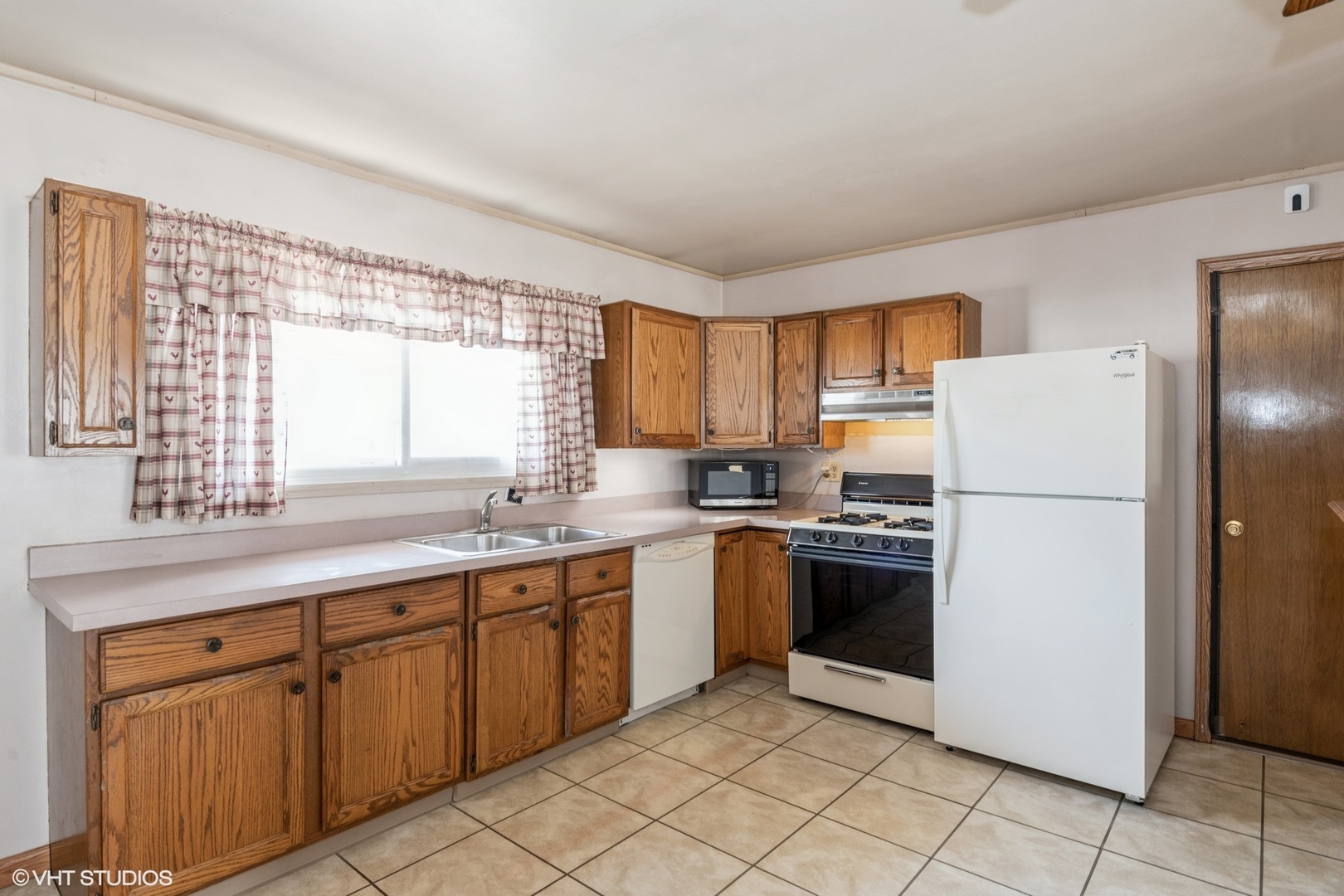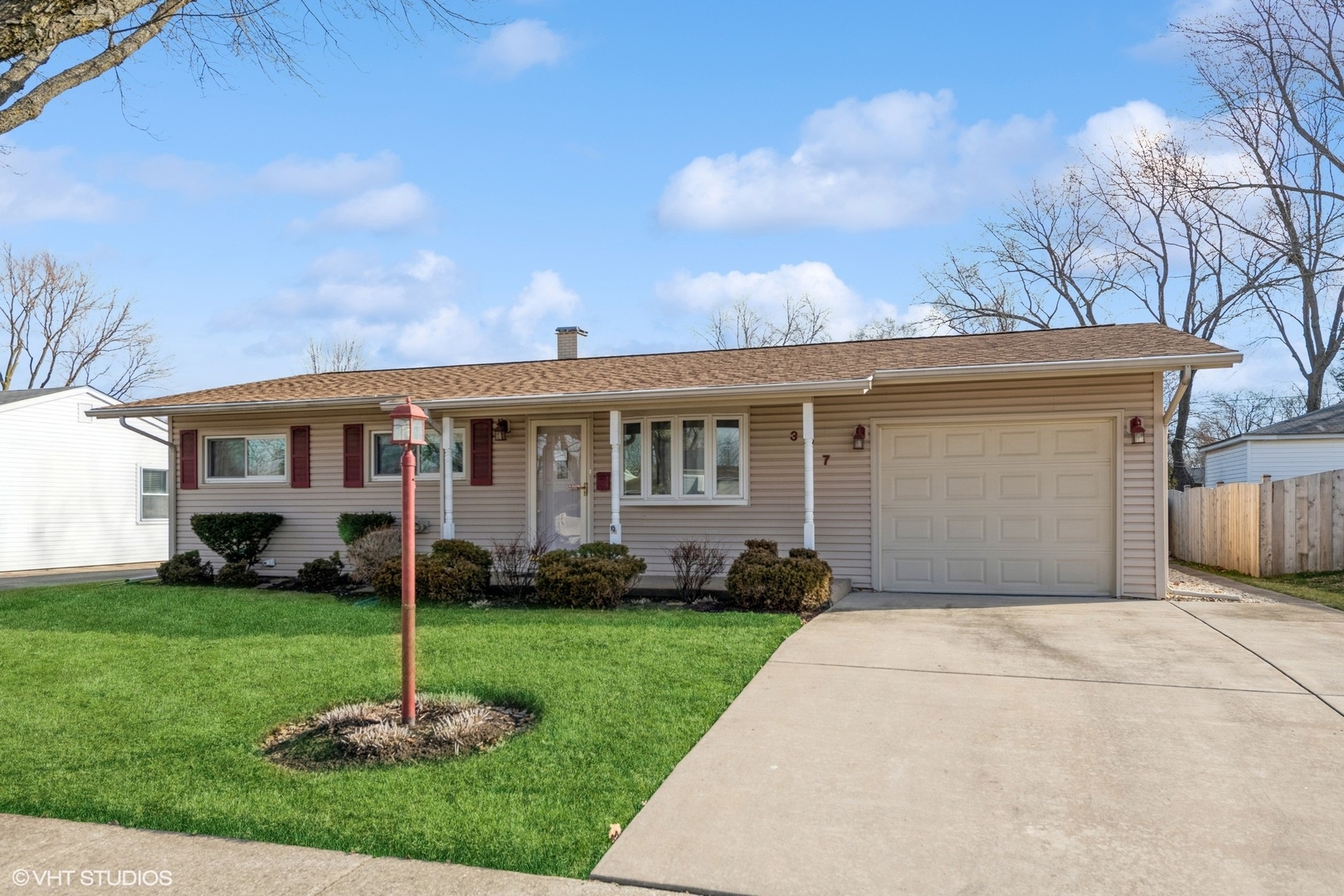 Discover this delightful ranch-style home, ideal for those embarking on homeownership. The welcoming living/dining area, adorned with durable laminate wood flooring, provides a cozy space for relaxation and meals. The kitchen, with its ceramic tile flooring, is well-equipped with a Whirlpool refrigerator, Magic Chef oven/range, Broan vent hood, Panasonic microwave, Maytag dishwasher, and double sink, ensuring culinary efficiency. The primary bedroom, along with two additional bedrooms, all feature laminate wood flooring and ample closet space, offering comfort and versatility. A functional hall bathroom boasts ceramic tile flooring, a neutral vanity, a medicine cabinet, and a jetted shower/tub with ceramic tile surround. The lower level features a vinyl-floored family room, a bathroom with ceramic tile flooring, a neutral vanity, and a shower, plus a laundry/utility room with a GE washer, Kenmore dryer, and utility sink. Additional features include a sump pump, a 2023 Bradford White 40-gallon hot water heater, a 2020 Heil furnace with humidifier, 100 amp electrical service, a shed, a Honeywell thermostat, and a concrete patio, all combining to create a home that's as practical as it is charming.
