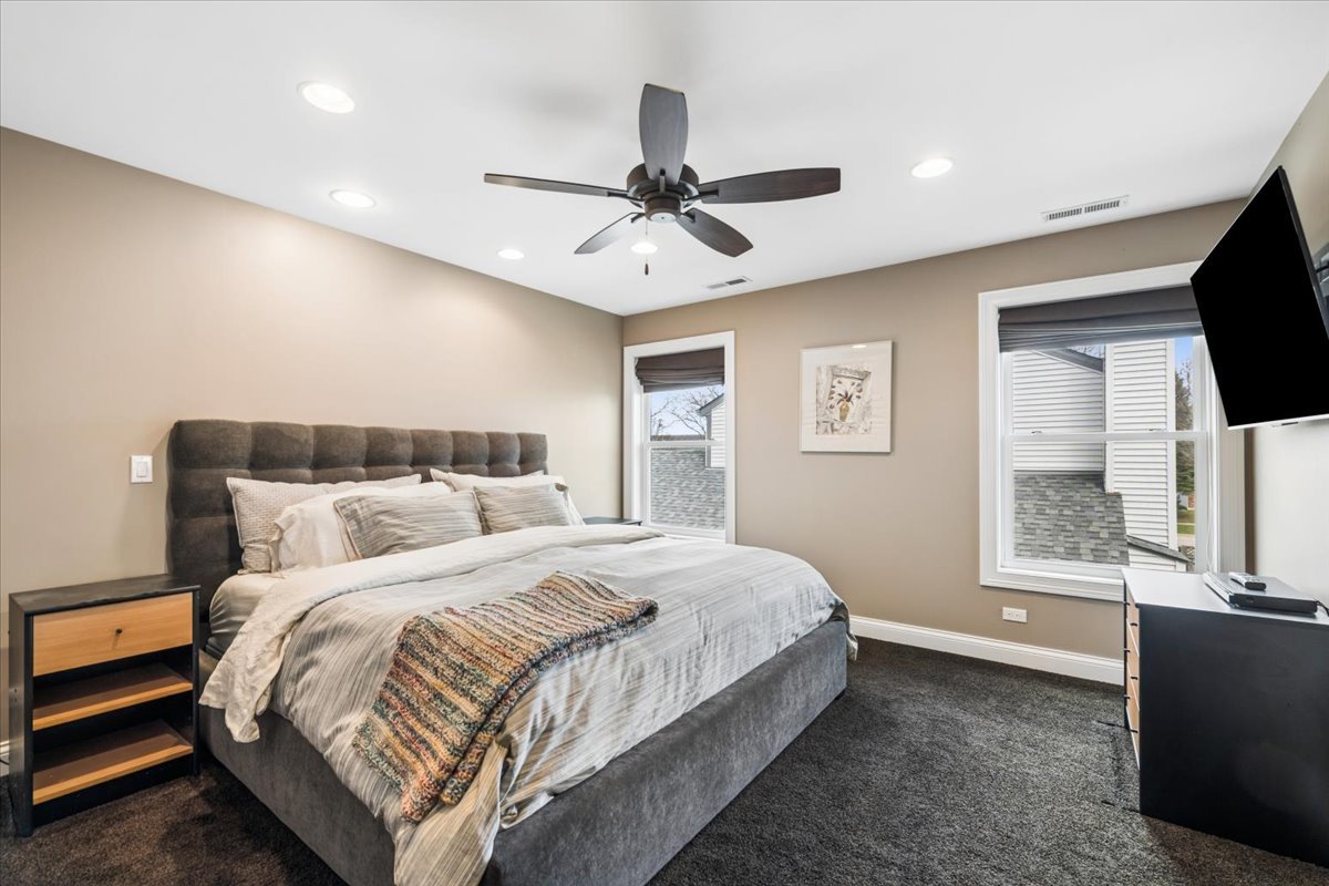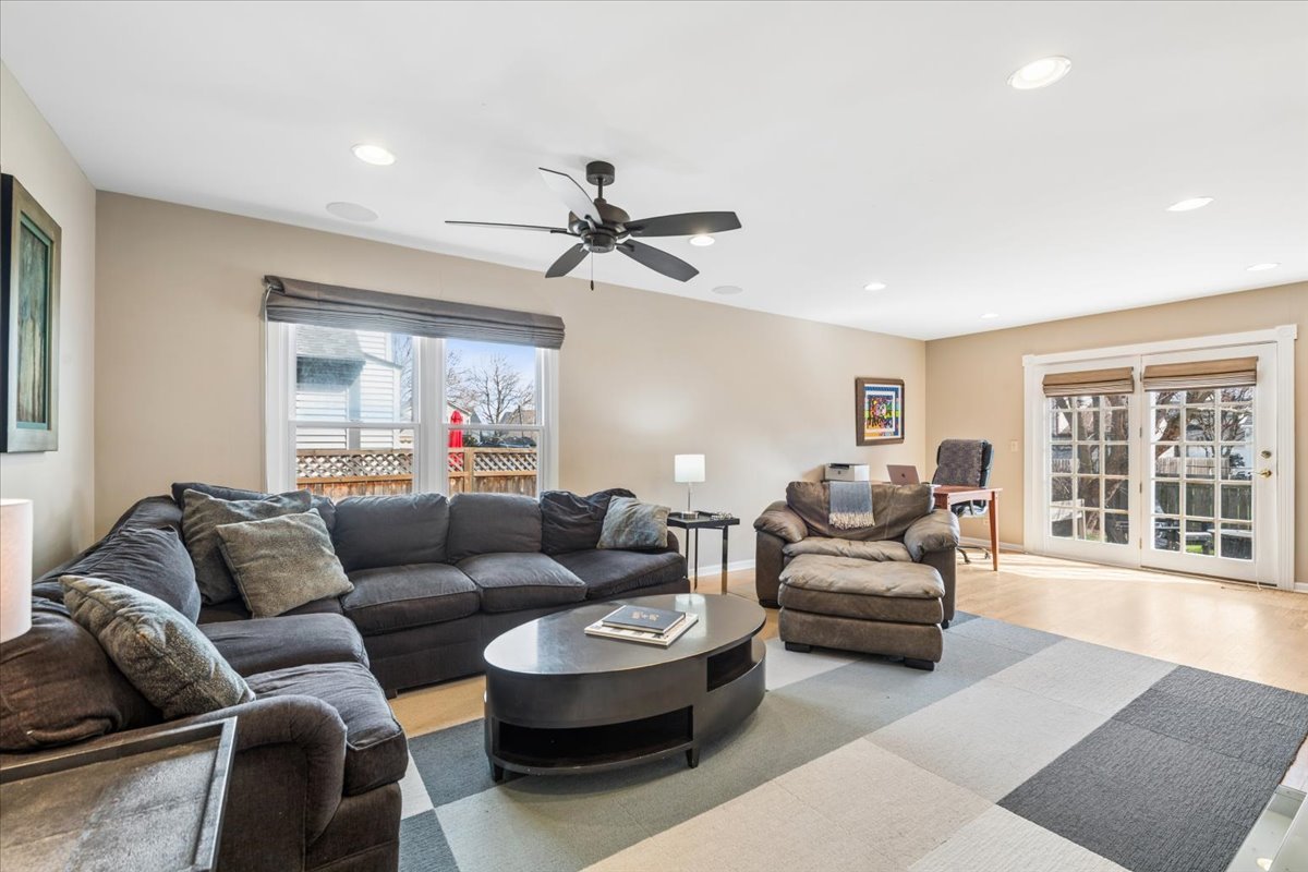 Set within the sought-after Green Knolls subdivision, this beautifully maintained two-story residence offers a thoughtful blend of comfort, function, and elevated everyday living, all within a neighborhood prized for its top-rated schools and enduring sense of community. A welcoming foyer with hardwood flooring introduces the main level, where sunlit living and dining spaces unfold with an easy, timeless flow-ideal for both daily living and effortless entertaining. The kitchen is designed as the heart of the home, appointed with granite countertops, a suite of stainless steel appliances including an LG refrigerator, KitchenAid double oven with five-burner cooktop and griddle, Bosch dishwasher, and LG microwave, all complemented by a double sink with brushed nickel fixtures. An adjacent eating area creates a warm, casual gathering space, seamlessly opening to the inviting family room featuring hardwood floors, recessed lighting, built-in speakers, and French doors that lead to a concrete patio, perfect for indoor-outdoor living. A powder room and a functional laundry/mud room complete the main level. Upstairs, the expansive primary suite is enhanced by a thoughtfully designed 2013 addition and serves as a private retreat with two walk-in closets and a spa inspired bath finished in tumbled marble, offering dual vanities, a soaking tub with mosaic surround, a separate shower with body sprays, bench seating, and a private commode room. A secondary ensuite bedroom is perfect for guests or family members, while two additional bedrooms share a well appointed hall bath. The finished basement extends the living space with a versatile recreation area and ample storage. Notable updates include newer windows, dual HVAC systems, a tankless water heater and refrigerator, reflecting a home that has been carefully maintained and thoughtfully improved over time. With a concrete driveway, patio, and a location that blends suburban tranquility with exceptional convenience, this is a home that delivers both lifestyle and long-term value in one of Buffalo Grove's most desirable neighborhoods.