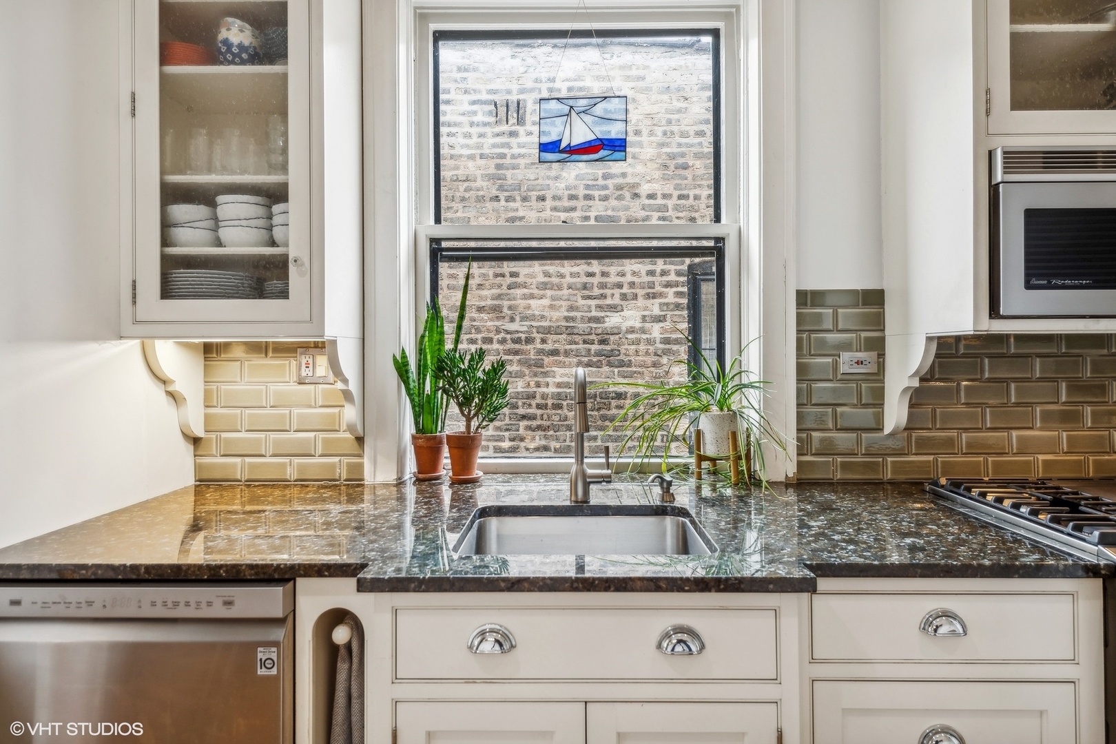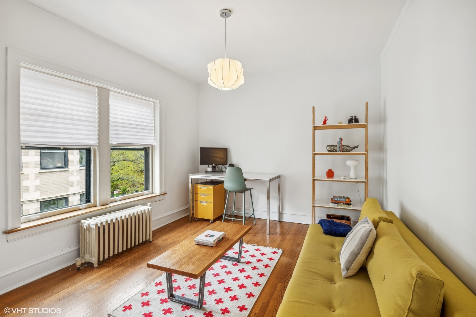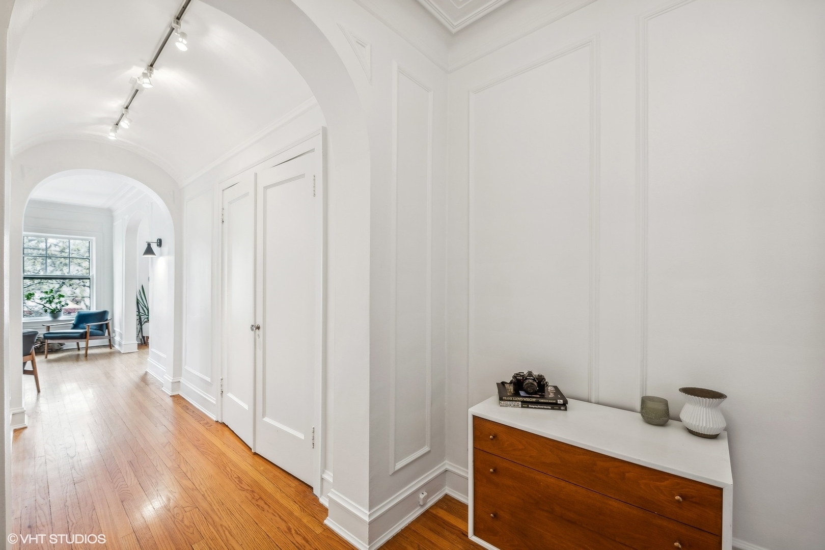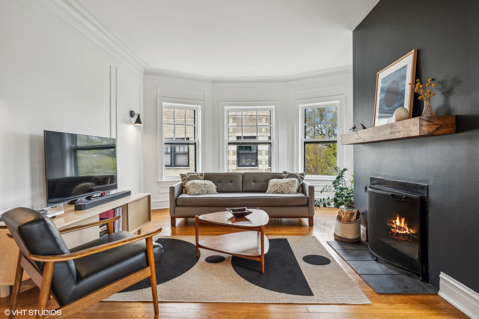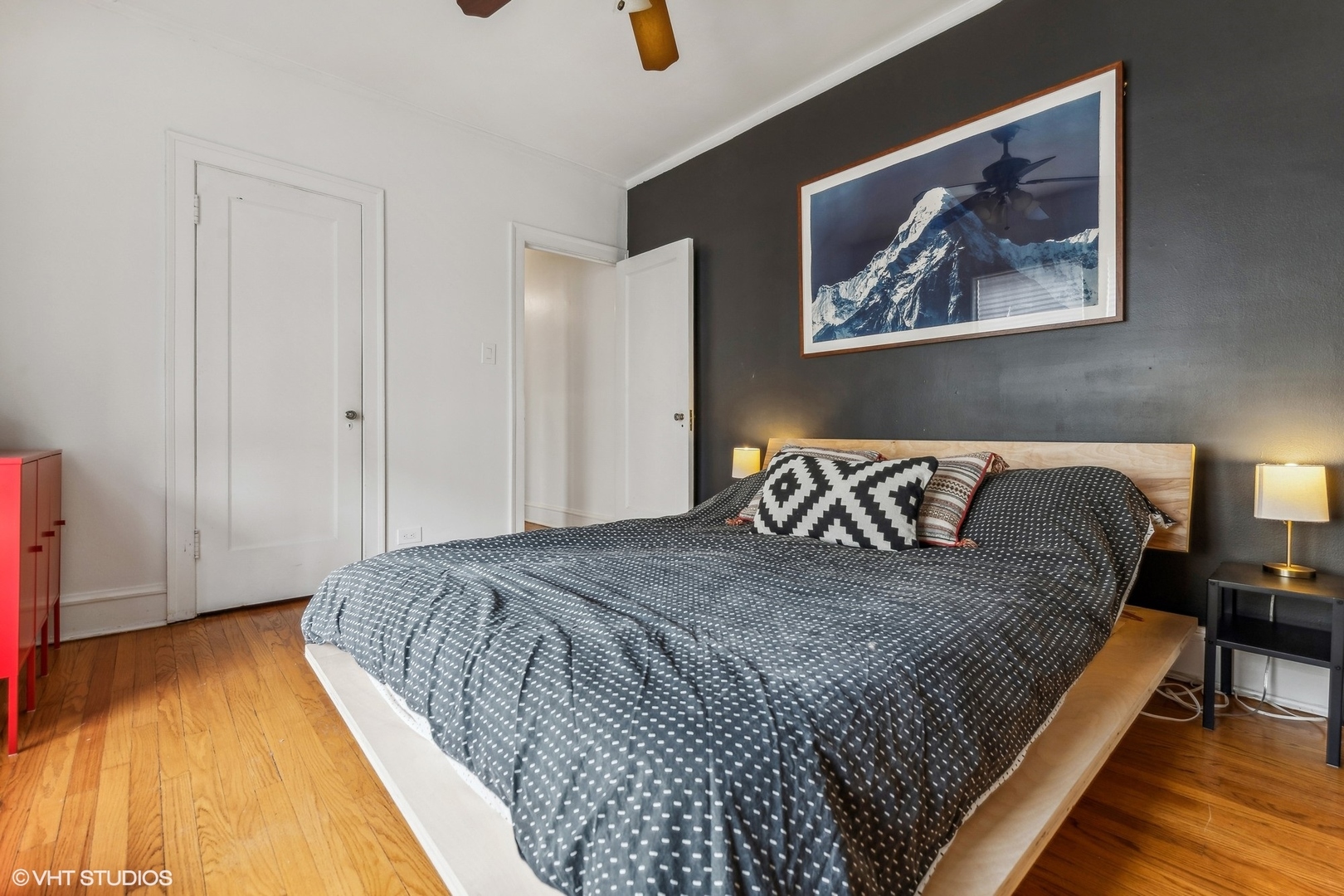 Elegance and timeless charm with this top-floor vintage condo nestled in a quaint courtyard building in the heart of South Evanston. Just a leisurely stroll from Lake Michigan, this residence boasts not only proximity to the serene waters but also offers glimpses of its beauty from select vantage points. As you enter through the foyer, you're greeted by the allure of hardwood flooring, accentuated by meticulous wall and ceiling molding, exuding sophistication at every turn. Illuminating the space is a milky white glass pendant lighting fixture, casting a soft, inviting glow. A double door coat closet provides practicality without sacrificing style. The living room embodies classic refinement with its hardwood flooring and picture frame wall molding, harmonizing effortlessly with curved doorways and a wood-burning fireplace adorned with a slate hearth and wood mantle. Accentuating the ambiance are black and gold wall sconces, adding a touch of opulence to the space. Move seamlessly into the dining room, where hardwood flooring sets the stage for gatherings and culinary delights. A sputnik brushed nickel lighting fixture adds a modern flair, while picture frame wall molding and ceiling trim enhance the room's character and charm. The kitchen is a culinary enthusiast's dream, featuring hardwood flooring, granite countertops, and a butcher block countertop, marrying functionality with style. A porcelain tile backsplash adds a touch of elegance, complementing the stainless steel sink with brushed nickel plumbing fixture. High-end appliances include a stainless steel KitchenAid refrigerator, GE stainless steel gas oven/range with griddle, Amana stainless steel microwave, LG stainless steel dishwasher, and GE washer/dryer. A door to the back staircase offers convenience and accessibility. Retreat to the primary bedroom, where hardwood flooring and crown molding create an atmosphere of tranquility. A ceiling light fan fixture provides comfort, while a closet offers ample storage space. Both hall bathrooms boast ceramic tile flooring and a shower/tub combo with ceramic tile, accompanied by a pedestal sink and a medicine cabinet for added convenience. Bedroom Two exudes mid-century modern charm with hardwood flooring and a cocoon pendant lighting fixture, while a double door closet with organizers ensures practicality without compromising style. Experience the epitome of urban-suburban living in this meticulously crafted vintage condo, where timeless elegance meets modern comfort, all within reach of the vibrant Evanston lifestyle.