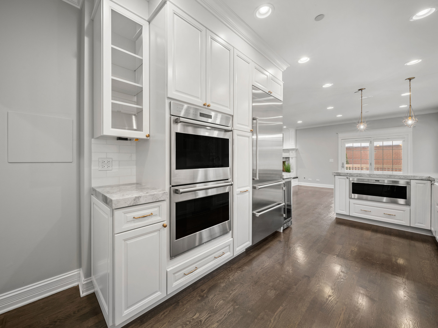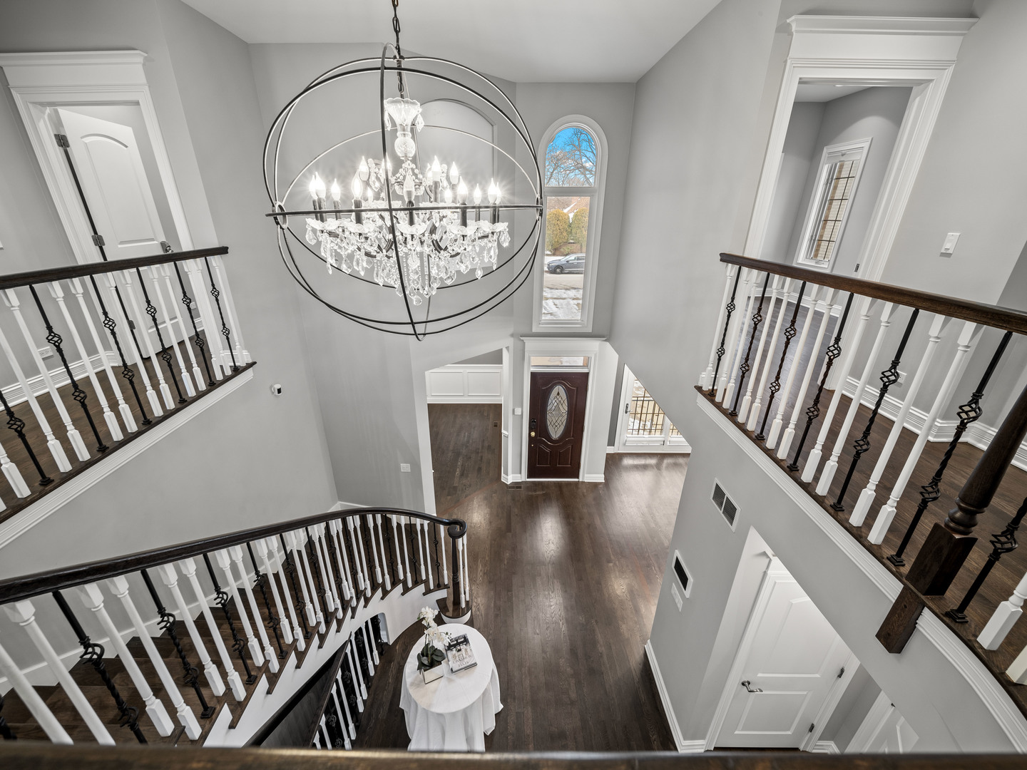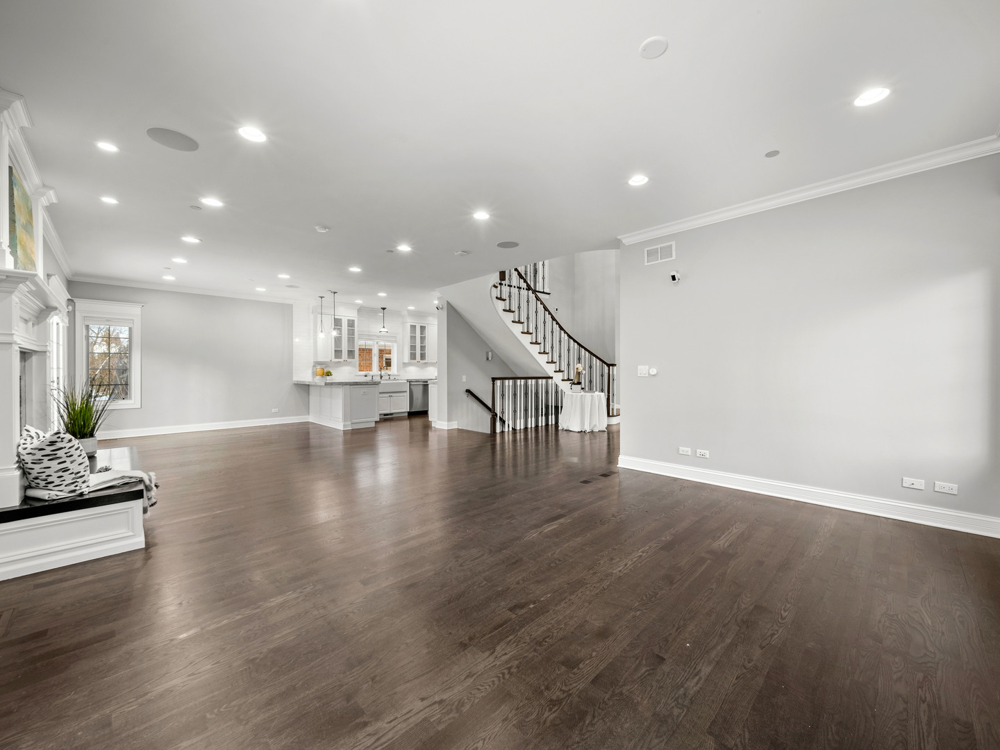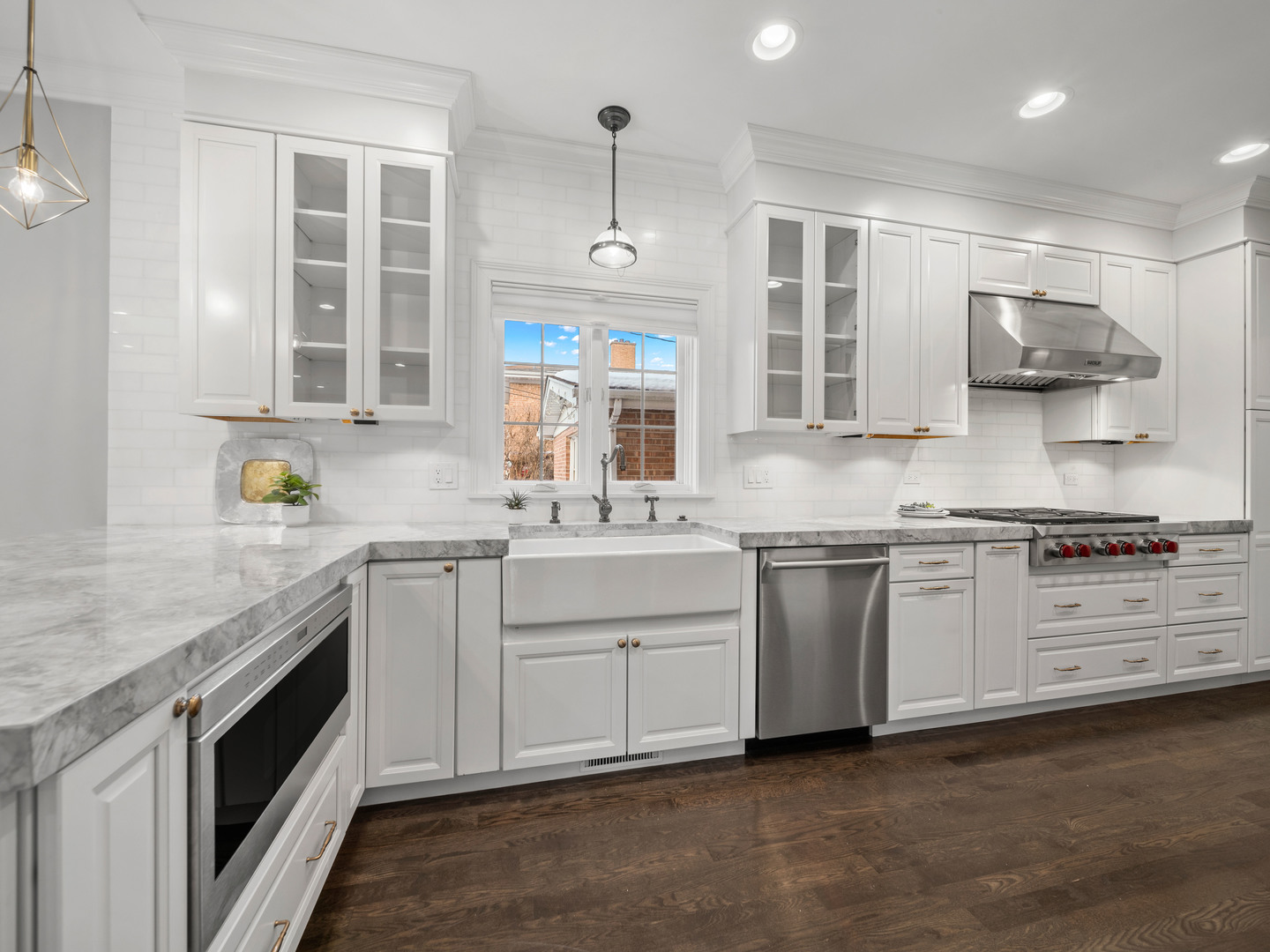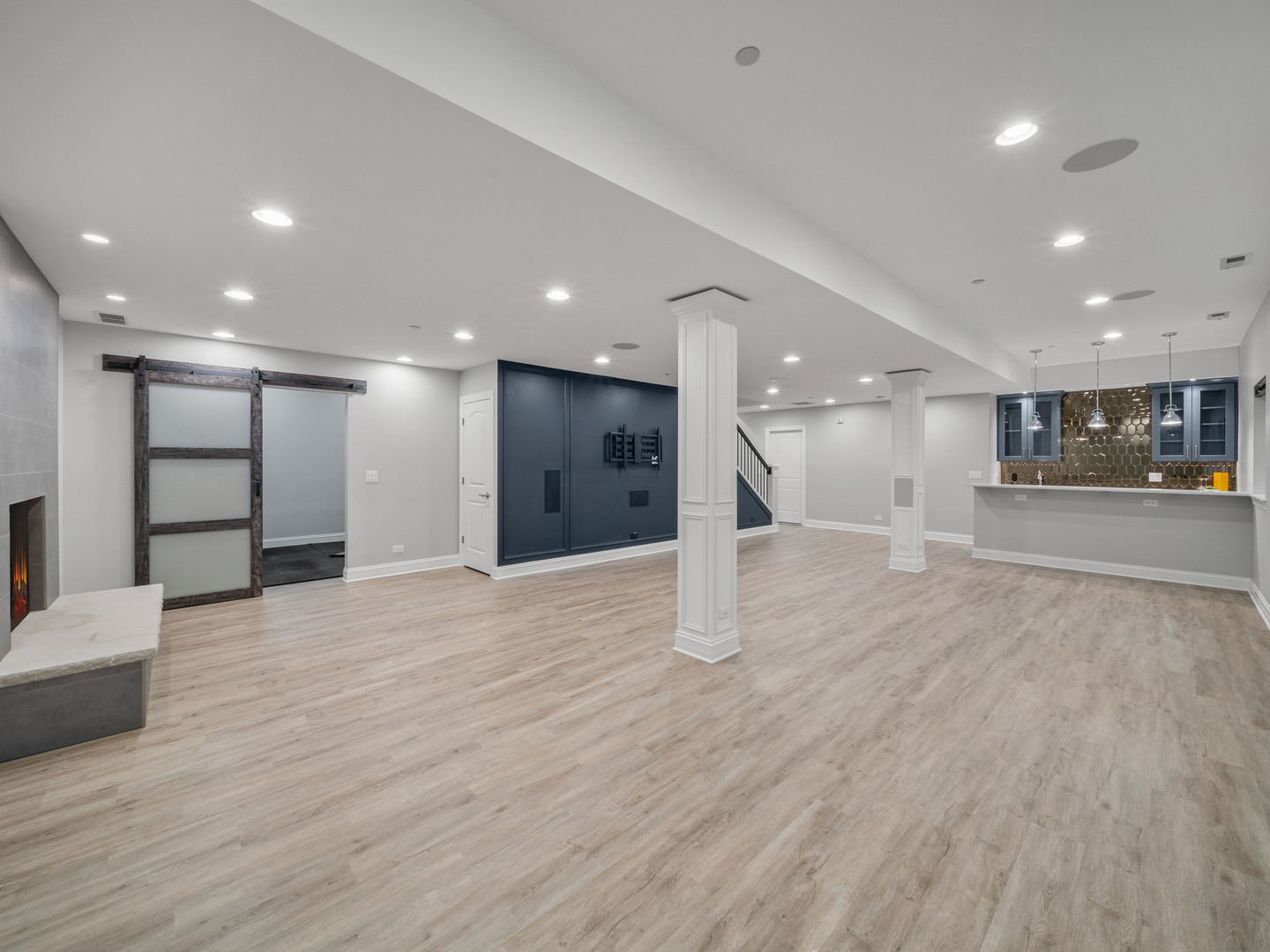 A masterclass in modern craftsmanship and timeless design, this newer-construction residence unfolds with effortless sophistication across three finished levels, introduced by a dramatic two-story foyer with a sculptural curved staircase and crystal-accented globe chandelier that sets an unmistakably elevated tone. Light-filled formal living and dining rooms, each trimmed with refined millwork, hardwood flooring, accent lighting, and multiple Juliette balconies create an elegant backdrop for entertaining. The heart of the home is a magazine-worthy chef's kitchen clad in quartzite, marble, and semi-custom cabinetry, anchored by Sub-Zero and Wolf appliances, a Shaws fireclay sink, and an extended breakfast bar that blends seamlessly into the breakfast room. The adjacent family room extends the home's chic yet inviting energy with a custom quartzite-surround fireplace, surround sound, and French doors opening to the newly replaced deck. A full bath and heated-floor laundry/mudroom complete the main level with thoughtful functionality. Upstairs, the sanctuary-like primary suite indulges with a private Juliette balcony, custom built-ins, a generous walk-in closet with custom built ins, and a spa-level bath featuring heated marble-inlay floors, dual quartz vanities, LED mirrors, a rainfall shower with body sprays, heated towel bar, and a standalone soaking tub. Three additional bedrooms-two with Juliette balconies-include an ensuite, a semi-ensuite, and beautifully curated finishes throughout. The fully finished lower level elevates leisure to a cinematic experience with an expansive recreation room boasting a gas fireplace, home theater wired for 11.4.2 surround sound, a designer bar with hammered stainless sink, mirrored backsplash, dual refrigeration, and seating for four, alongside a dedicated exercise room, fifth bedroom, full bath, and ample storage. Enhanced with smart-home controls, upgraded mechanicals, 200-amp service, sump with backup, and a long list of thoughtful updates-including roof (2016), primary suite and kitchen updates, redesigned primary bath, laundry and fireplace enhancements, and a comprehensive lower-level renovation-this residence delivers turnkey luxury with the aesthetic finesse of a bespoke custom build. Perfectly situated in a highly walkable neighborhood near top-rated schools, popular restaurants, and everyday conveniences, this rare offering is where architectural intention, modern amenity, and elevated living converge in perfect harmony.