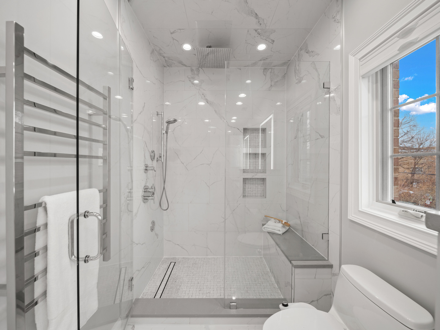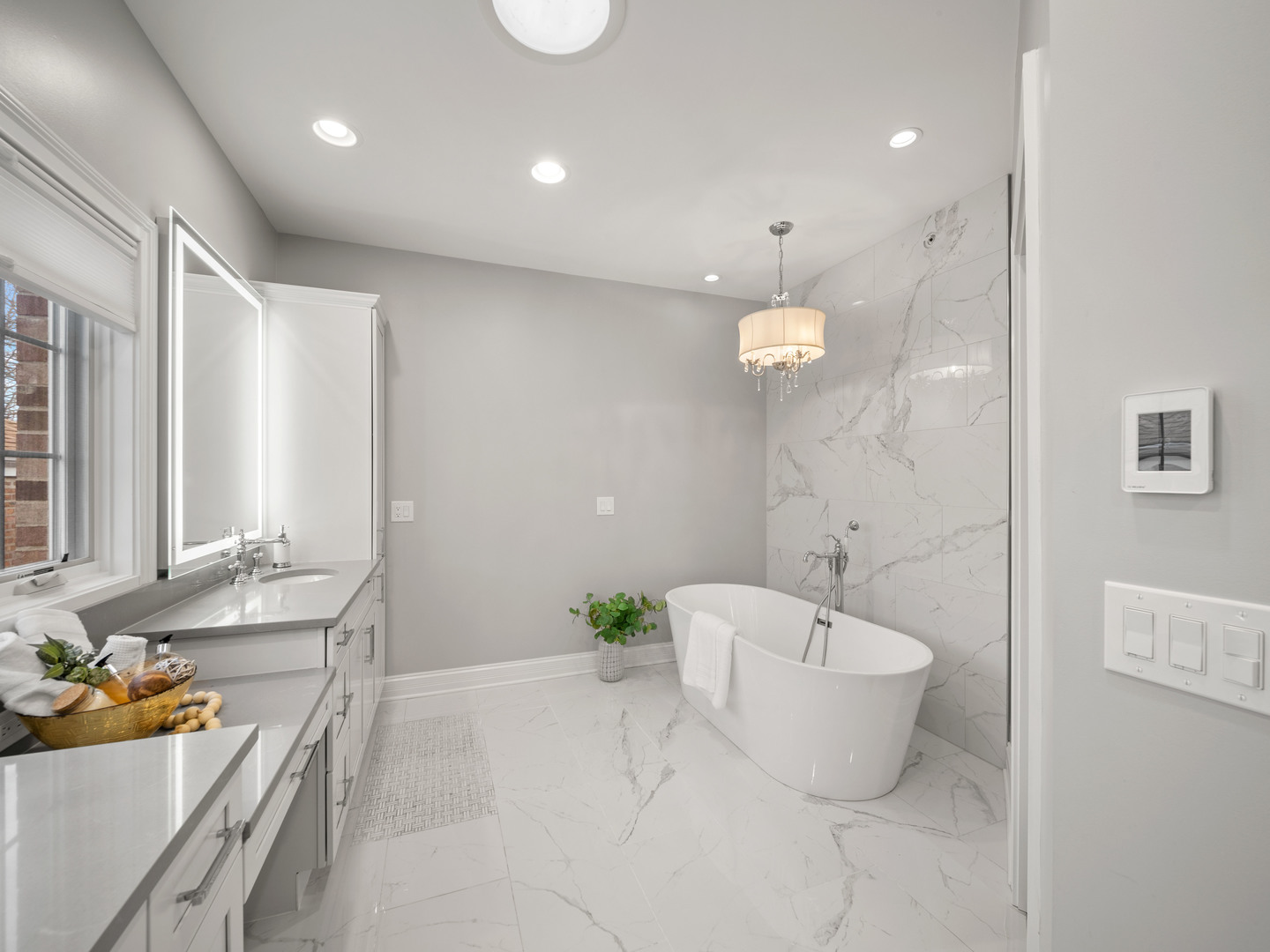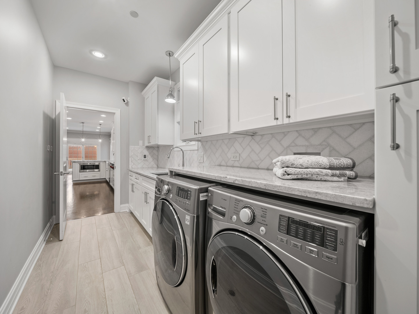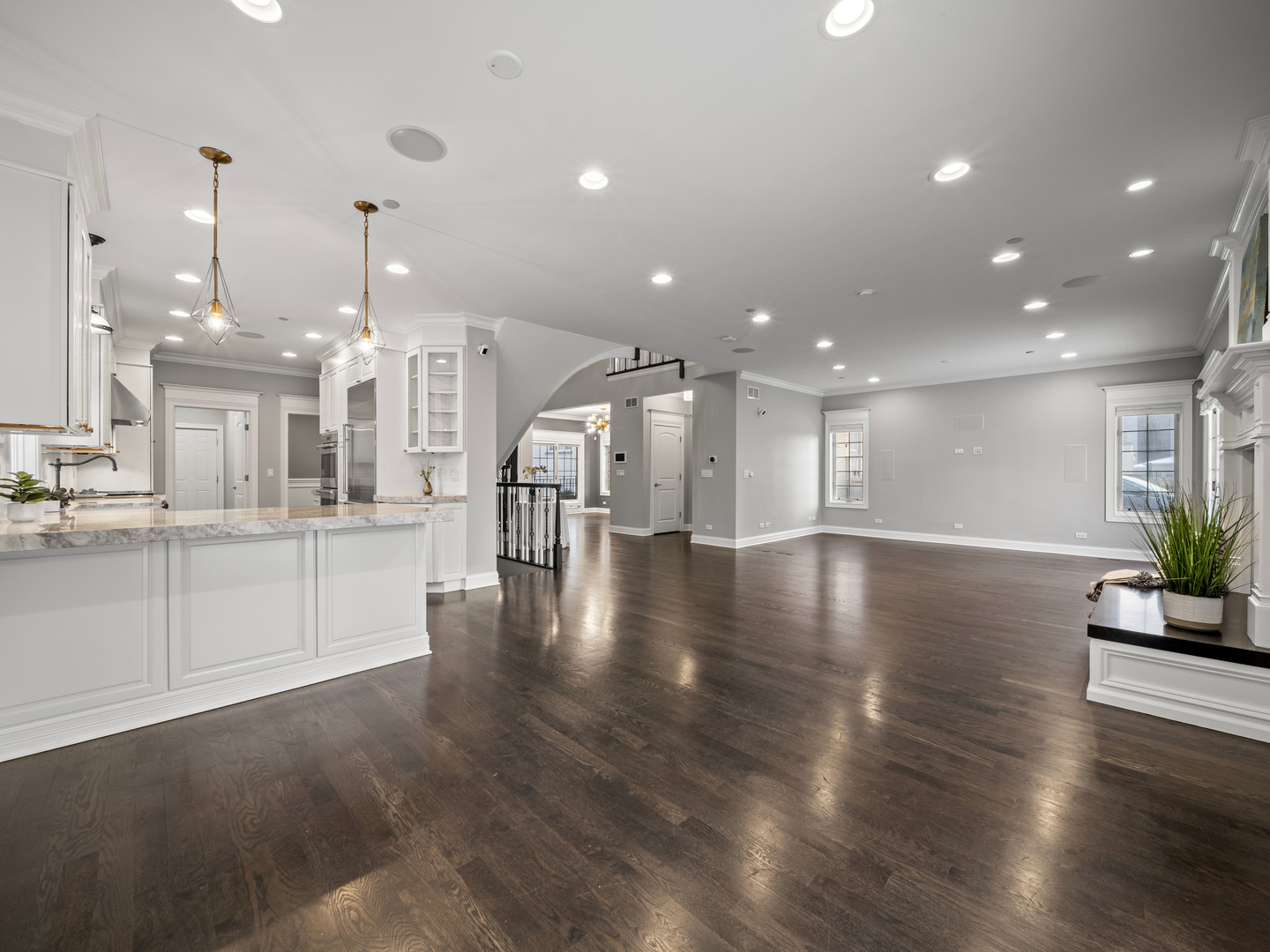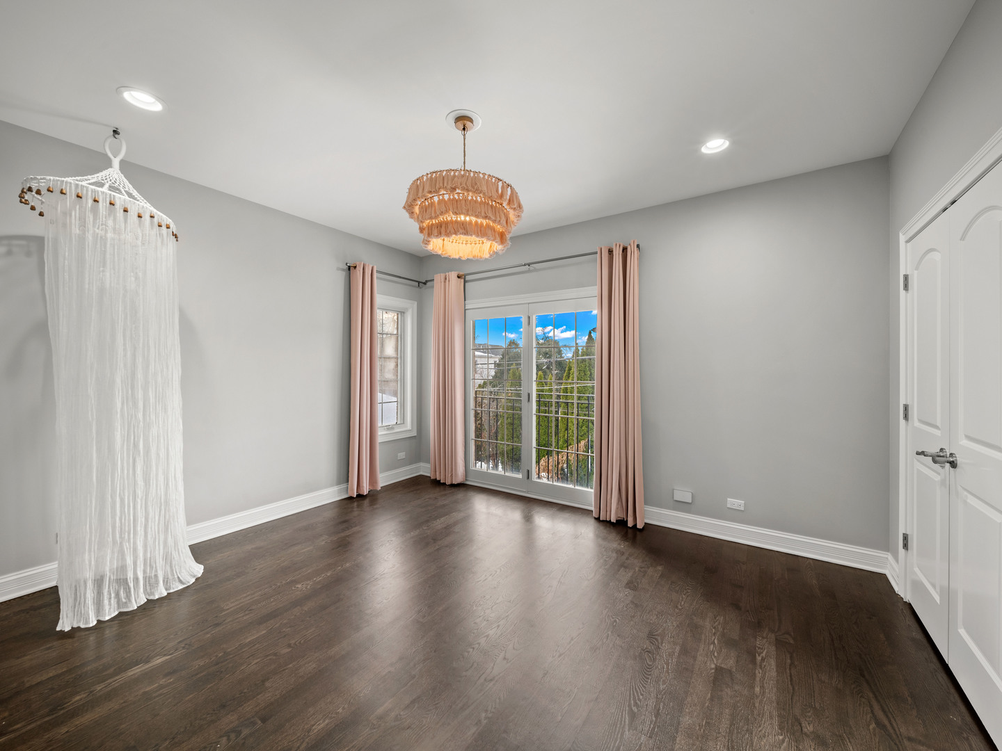 A masterclass in modern craftsmanship and timeless design, this newer-construction residence unfolds with effortless sophistication across three finished levels, introduced by a dramatic two-story foyer with a sculptural curved staircase and crystal-accented globe chandelier that sets an unmistakably elevated tone. Light-filled formal living and dining rooms, each trimmed with refined millwork, hardwood flooring, accent lighting, and multiple Juliette balconies create an elegant backdrop for entertaining. The heart of the home is a magazine-worthy chef's kitchen clad in quartzite, marble, and semi-custom cabinetry, anchored by Sub-Zero and Wolf appliances, a Shaws fireclay sink, and an extended breakfast bar that blends seamlessly into the breakfast room. The adjacent family room extends the home's chic yet inviting energy with a custom quartzite-surround fireplace, surround sound, and French doors opening to the newly replaced deck. A full bath and heated-floor laundry/mudroom complete the main level with thoughtful functionality. Upstairs, the sanctuary-like primary suite indulges with a private Juliette balcony, custom built-ins, a generous walk-in closet with custom built ins, and a spa-level bath featuring heated marble-inlay floors, dual quartz vanities, LED mirrors, a rainfall shower with body sprays, heated towel bar, and a standalone soaking tub. Three additional bedrooms-two with Juliette balconies-include an ensuite, a semi-ensuite, and beautifully curated finishes throughout. The fully finished lower level elevates leisure to a cinematic experience with an expansive recreation room boasting a gas fireplace, home theater wired for 11.4.2 surround sound, a designer bar with hammered stainless sink, mirrored backsplash, dual refrigeration, and seating for four, alongside a dedicated exercise room, fifth bedroom, full bath, and ample storage. Enhanced with smart-home controls, upgraded mechanicals, 200-amp service, sump with backup, and a long list of thoughtful updates-including roof (2016), primary suite and kitchen updates, redesigned primary bath, laundry and fireplace enhancements, and a comprehensive lower-level renovation-this residence delivers turnkey luxury with the aesthetic finesse of a bespoke custom build. Perfectly situated in a highly walkable neighborhood near top-rated schools, popular restaurants, and everyday conveniences, this rare offering is where architectural intention, modern amenity, and elevated living converge in perfect harmony.