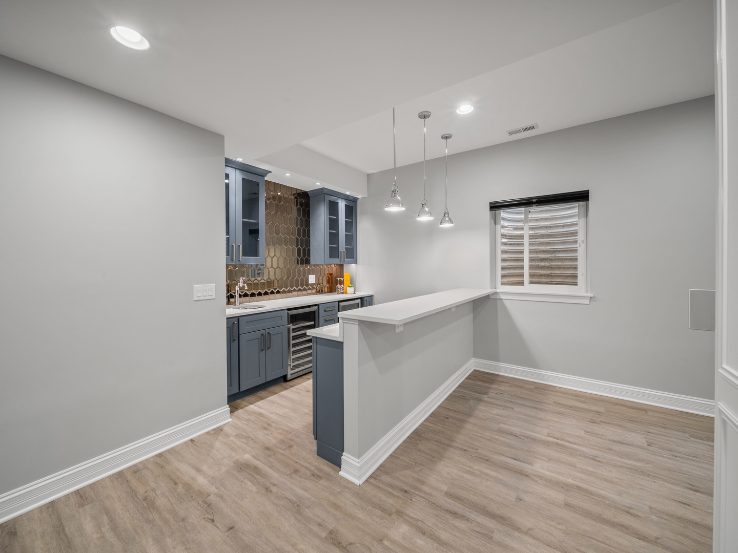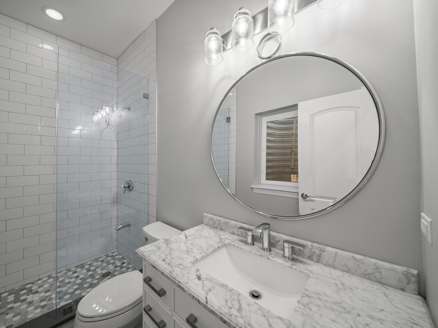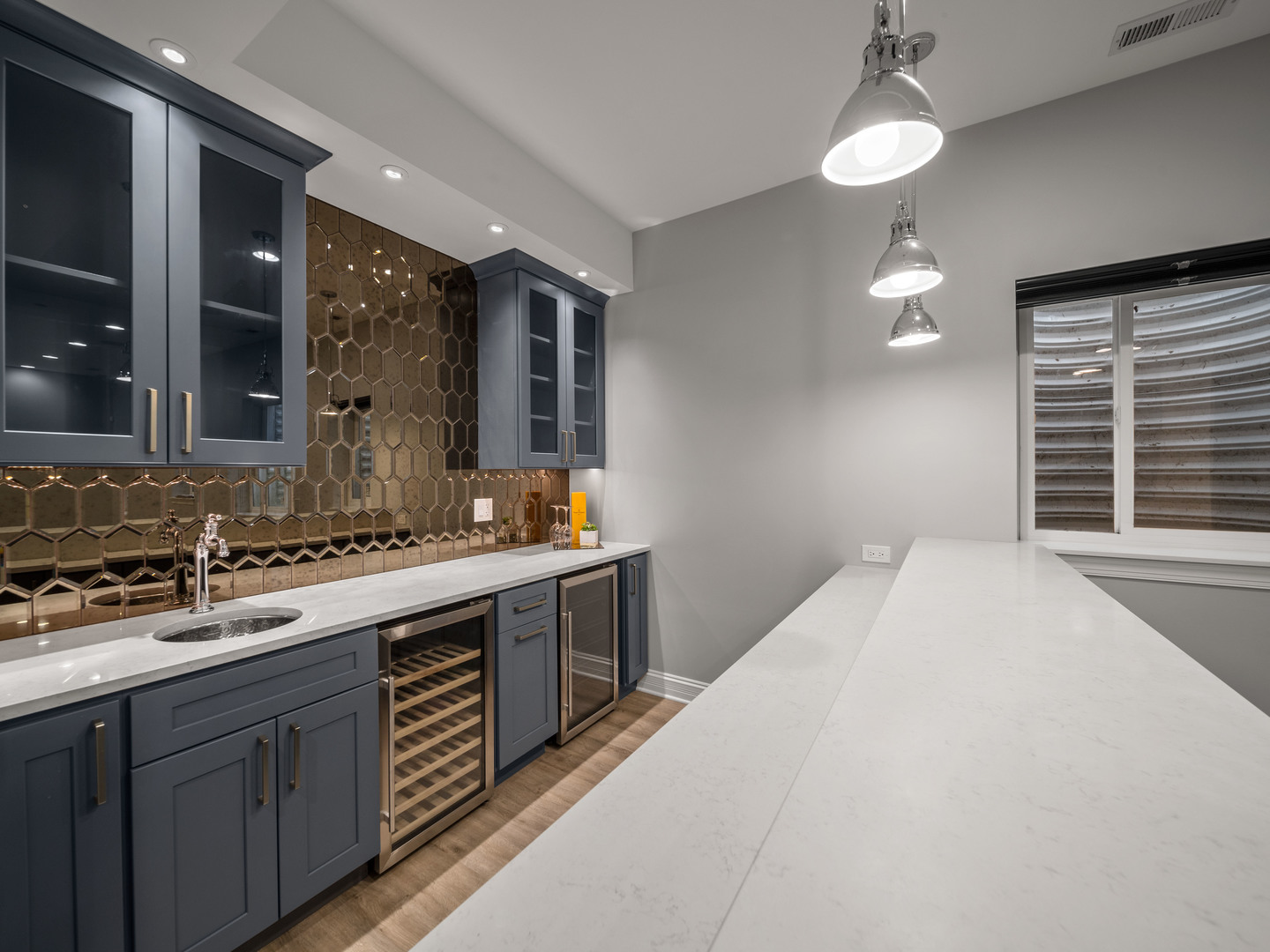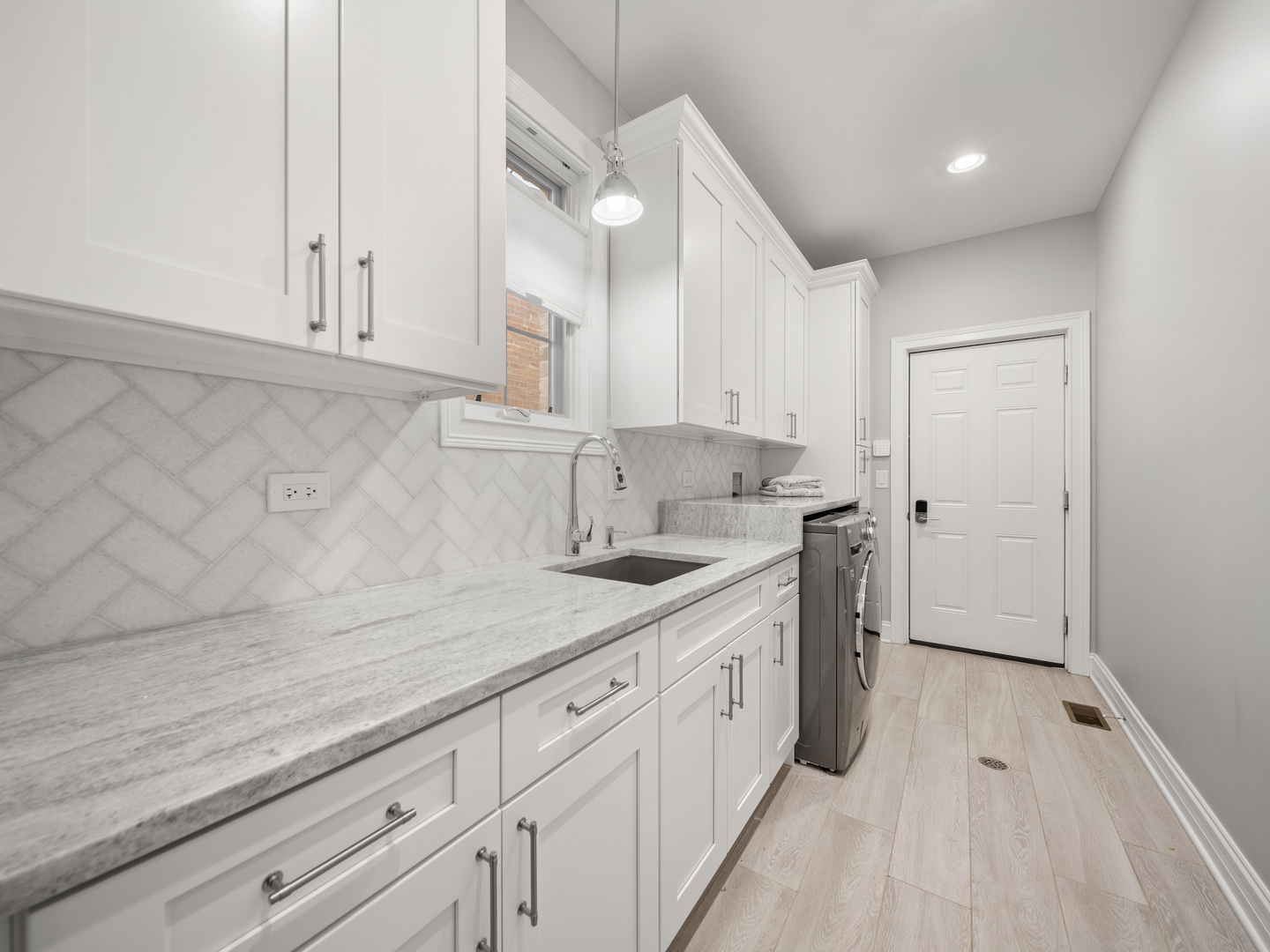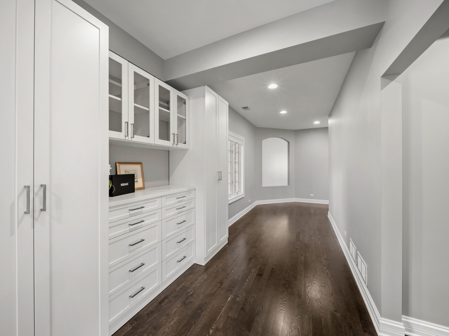 A masterclass in modern craftsmanship and timeless design, this newer-construction residence unfolds with effortless sophistication across three finished levels, introduced by a dramatic two-story foyer with a sculptural curved staircase and crystal-accented globe chandelier that sets an unmistakably elevated tone. Light-filled formal living and dining rooms, each trimmed with refined millwork, hardwood flooring, accent lighting, and multiple Juliette balconies create an elegant backdrop for entertaining. The heart of the home is a magazine-worthy chef's kitchen clad in quartzite, marble, and semi-custom cabinetry, anchored by Sub-Zero and Wolf appliances, a Shaws fireclay sink, and an extended breakfast bar that blends seamlessly into the breakfast room. The adjacent family room extends the home's chic yet inviting energy with a custom quartzite-surround fireplace, surround sound, and French doors opening to the newly replaced deck. A full bath and heated-floor laundry/mudroom complete the main level with thoughtful functionality. Upstairs, the sanctuary-like primary suite indulges with a private Juliette balcony, custom built-ins, a generous walk-in closet with custom built ins, and a spa-level bath featuring heated marble-inlay floors, dual quartz vanities, LED mirrors, a rainfall shower with body sprays, heated towel bar, and a standalone soaking tub. Three additional bedrooms-two with Juliette balconies-include an ensuite, a semi-ensuite, and beautifully curated finishes throughout. The fully finished lower level elevates leisure to a cinematic experience with an expansive recreation room boasting a gas fireplace, home theater wired for 11.4.2 surround sound, a designer bar with hammered stainless sink, mirrored backsplash, dual refrigeration, and seating for four, alongside a dedicated exercise room, fifth bedroom, full bath, and ample storage. Enhanced with smart-home controls, upgraded mechanicals, 200-amp service, sump with backup, and a long list of thoughtful updates-including roof (2016), primary suite and kitchen updates, redesigned primary bath, laundry and fireplace enhancements, and a comprehensive lower-level renovation-this residence delivers turnkey luxury with the aesthetic finesse of a bespoke custom build. Perfectly situated in a highly walkable neighborhood near top-rated schools, popular restaurants, and everyday conveniences, this rare offering is where architectural intention, modern amenity, and elevated living converge in perfect harmony.