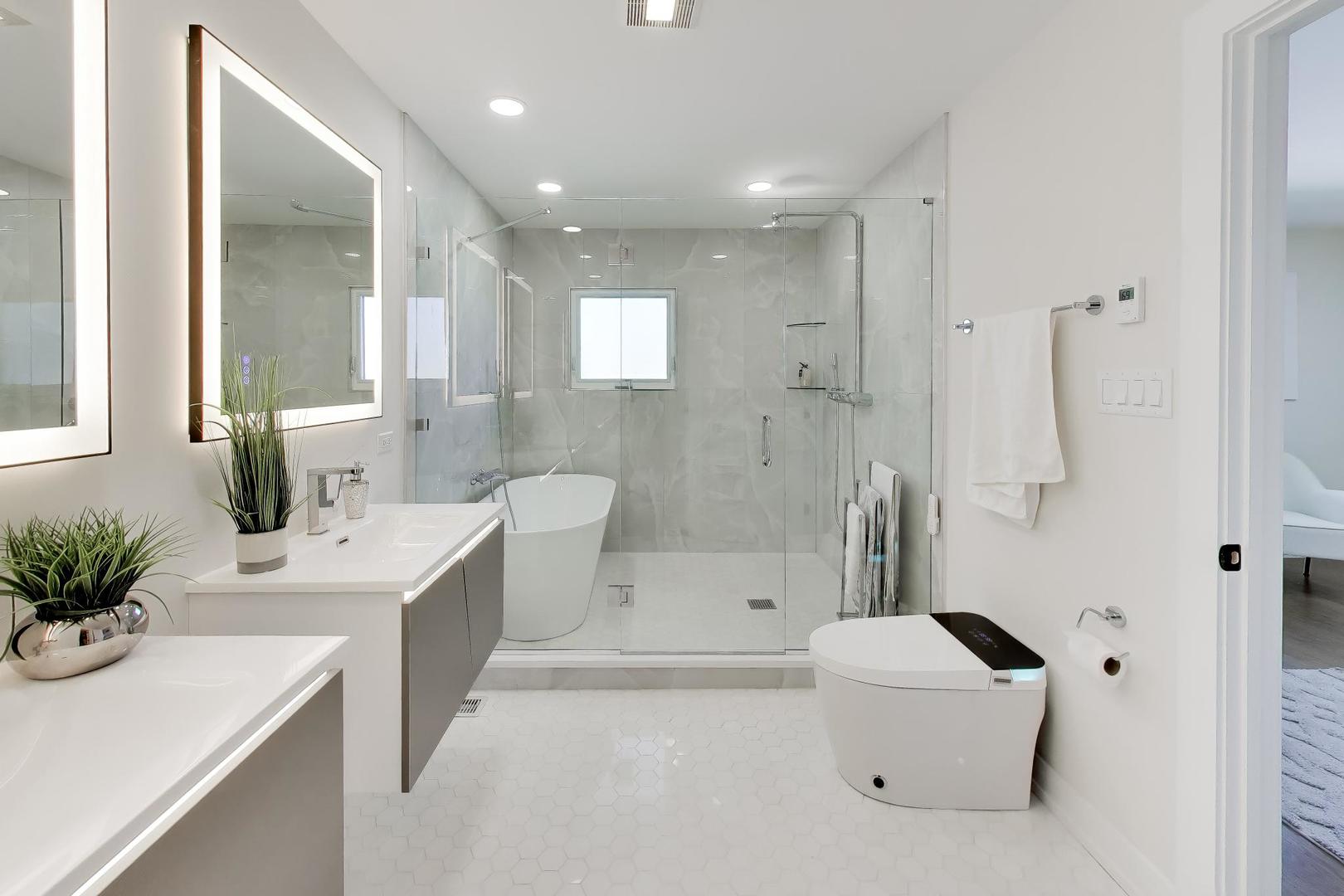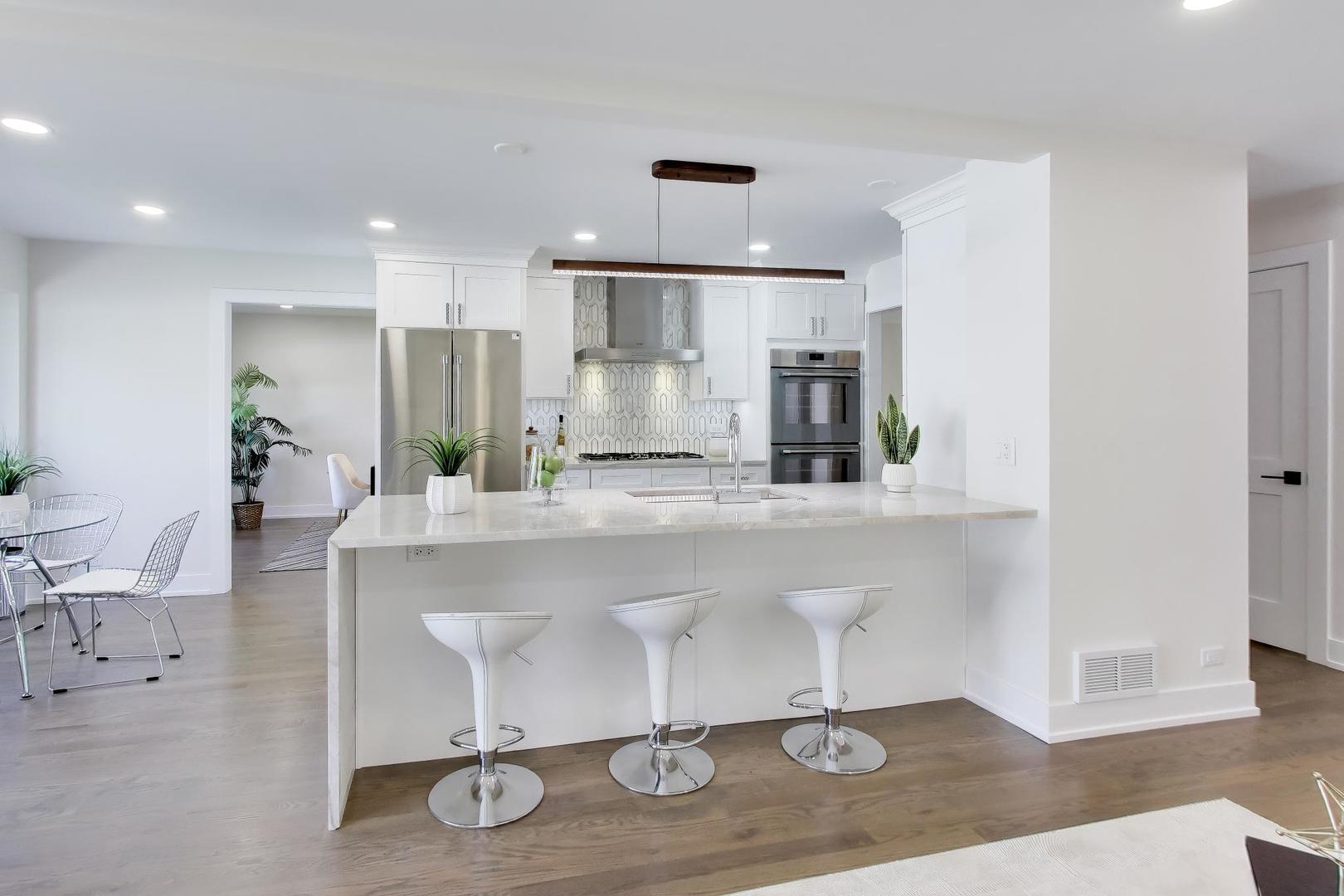 Welcome to 6850 Latrobe: a completely renovated 4 Bedroom 4.1 Bath home in the highly-coveted Skokie Towers Subdivision offering over 4,100sf of total living space spread amongst three levels. This home offers high-end finishes with the perfect blend of suburban tranquility and everyday convenience- all just blocks or minutes to Shopping, Forest Preserves, Parks, and Expressway access. Main Floor starts with the gracious foyer, double door entry with Oak Floors throughout the entire space with an The Open Concept Kitchen feat. White Shaker Cabinetry, Stainless Thermador Package, Taj Mahal Quartzite with 1/2 waterfall Island, Grohe Fixtures, with Pantry and ample eat-in area overlooking the Backyard. Huge Step-Down Living Room offers a great place to host with a Dining Room enough for accommodating the largest family gatherings. Second Floor offers similar solid features: hardwood floors, recessed lighting, including the Primary Suite with Walk-In Closet, Organizers, Marble Hexagon Tiles with Heated Floors, Floating Vanities, Stand Up Shower with Rain Shower & Soaking Tub. Second Bedroom equally as nice with own ensuite, walk in closet, and finishes. 3rd & 4th Bedrooms grand in size with shared Hallway bath with Double Vanity, Clarke Tub with Therapeutic Controls. Convenient 2nd Floor LG Laundry System complete the floor. Rounding out the home is the Basement; Huge Rec Room with premium padded Carpet, Office with Full Stand Up Shower next to it for guests, Recessed Lighting, Wet Bar with Beverage Cooler & Quartz Countertops. Sliding Doors from Family Room lead to the Patio and a Fully Fenced Yard. The 2 Car Garage Includes New Modern Door & easy access to the Mud Room, Hall Tree with Cubbies before stepping into the home. Lastly; sizable improvements include a New Roof, Windows, AC, HW Tank, 200 Amp Service, Smart Locks, Doorbells, and Asphalt Driveway to complete this package.