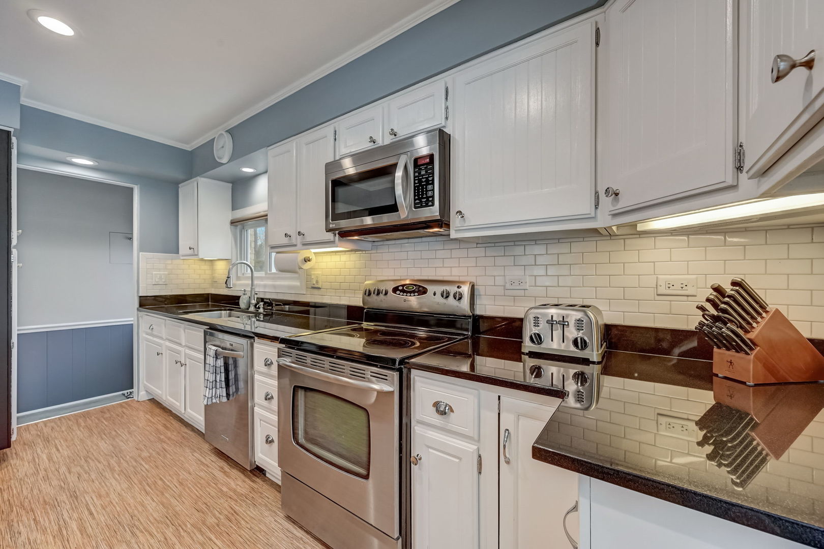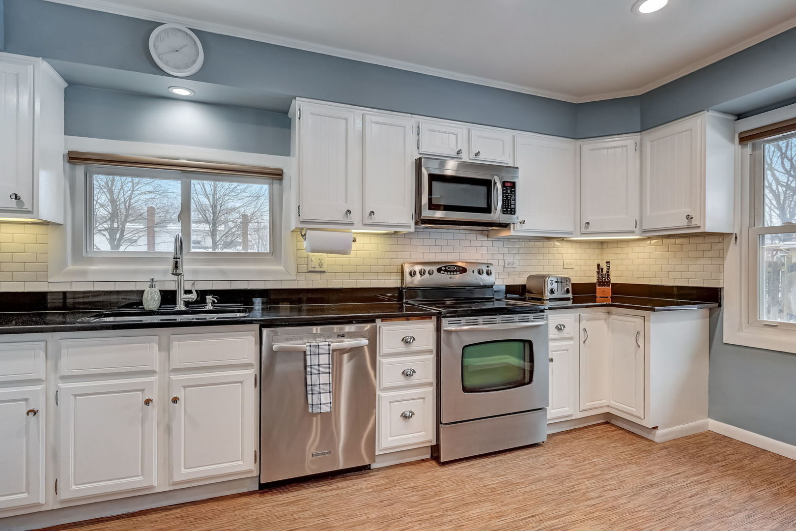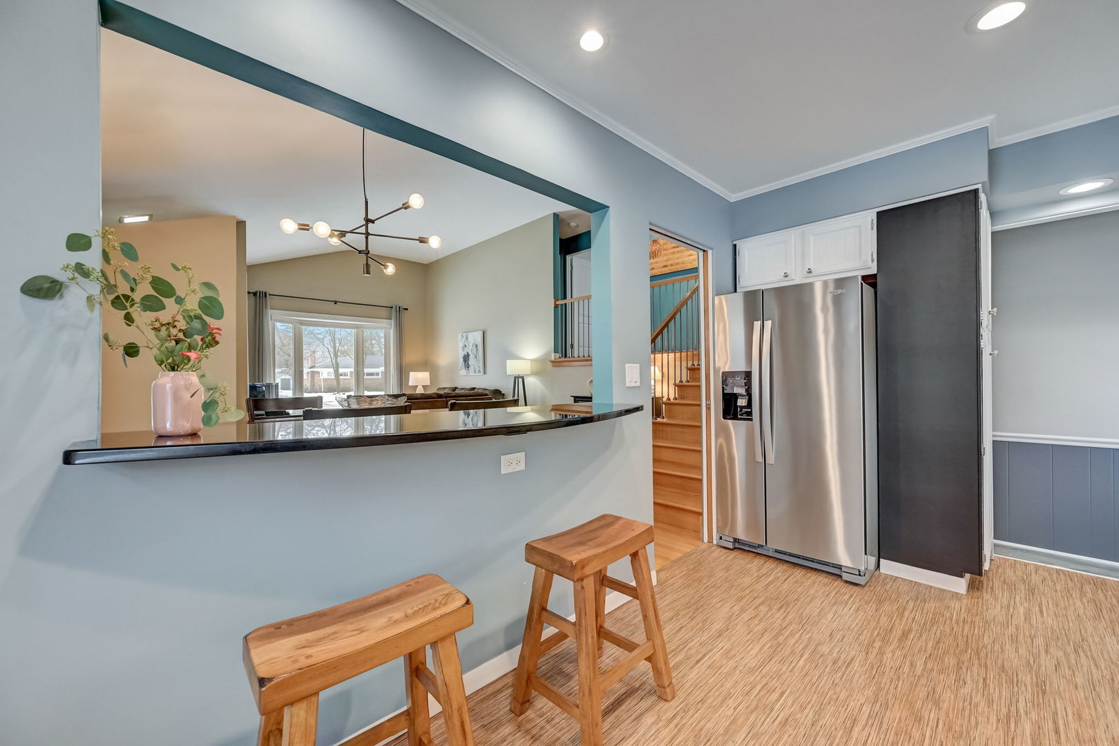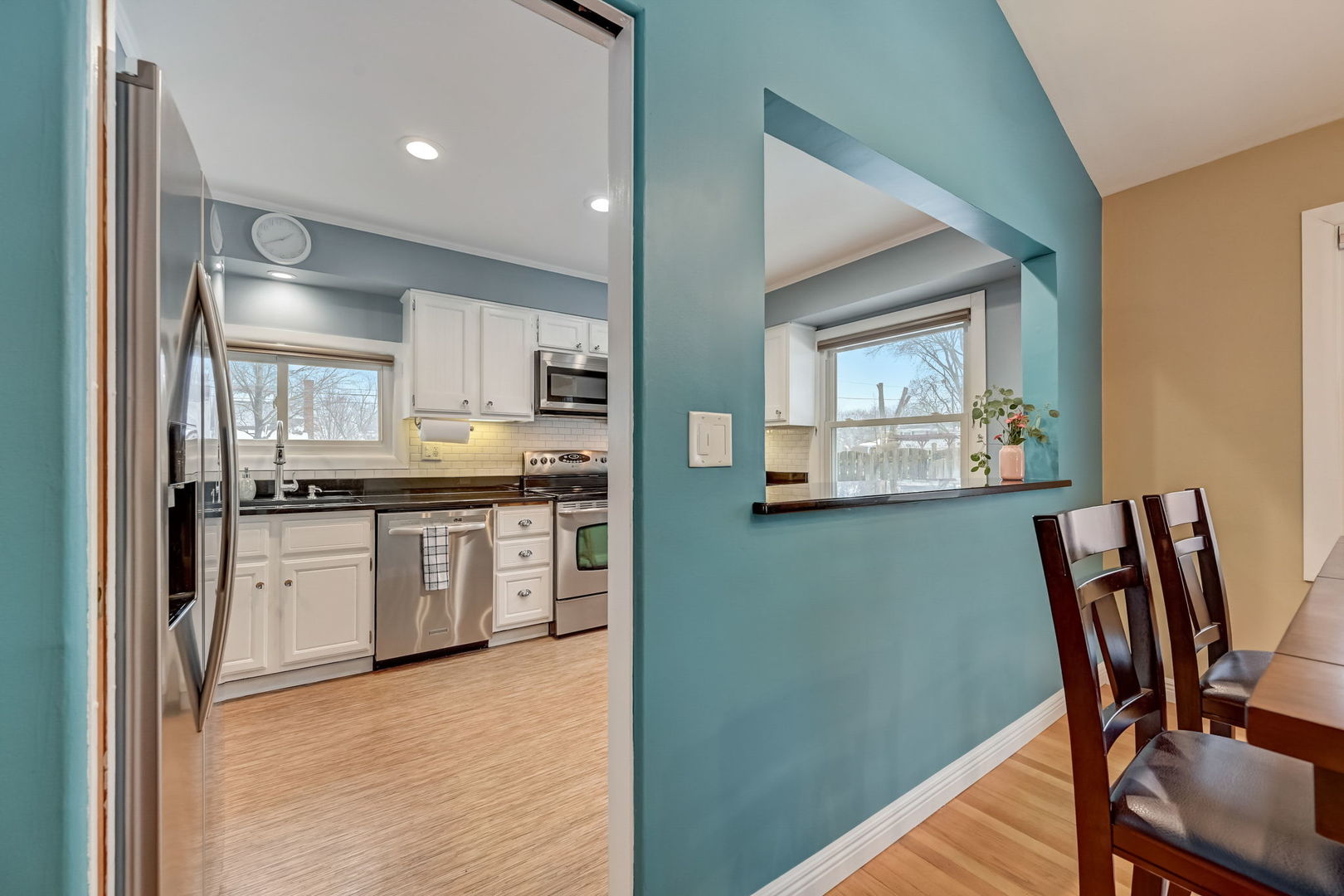 Nestled in a coveted neighborhood renowned for its top-tier schools, this charming residence presents an ideal opportunity as a delightful starter home. Recently upgraded with meticulous attention to detail, the property boasts a harmonious blend of comfort and modern elegance. Upon entering, the foyer gracefully transitions into a sunlit living room, featuring lustrous hardwood flooring, an impressive vaulted ceiling, and a picturesque bay window. The adjoining dining room, equally splendid, is adorned with hardwood floors and a chic sputnik black lighting fixture, perfect for hosting dinner parties. The heart of this home, the kitchen, is a culinary haven with vinyl flooring, sleek granite countertops, a trendy subway tile backsplash, and high-quality stainless steel appliances. The inviting see-through counter to the dining room enhances the sense of openness. The second level is a tranquil retreat comprising a primary bedroom with hardwood floors and ample storage in the double door closet. Bedrooms two and three, one with hardwood and the other carpeted, also feature double door closets, offering generous storage space. The renovated bathroom(2022) is a blend of functionality and style, showcasing vinyl flooring, a beadboard, a granite-topped vanity with a Kohler sink, and a shower/tub combo with wavy tile design. Descend to the lower level to discover a cozy family room with carpeted flooring, recessed lighting, and a stylish bar set against granite countertops, complete with cabinetry and a wine rack. This level also houses a practical laundry/mechanical room with modern LG appliances and a bathroom featuring ceramic tile flooring and a porcelain-tiled shower. The home has seen numerous updates, new furnace & a/c (2023), Refrigerator(2021), hot water heater (2021), including a new washer & dryer (2015), a complete basement renovation (2018), a new concrete driveway and patio (2020), and a comprehensive overhaul of the roof, gutters, soffit, and fascia for both house and garage (2021). Additionally, the house is equipped with a 60-amp sub-panel in the garage, a new Ecobee smart thermostat, in-wall speaker and network cabling (CAT 6), hard-wired internet wiring to the garage, LED landscape and interior lighting. Further enhancing the property's appeal are the outdoor features, including 'no-freeze' exterior faucets, an outdoor firewood rack, and newly buried Comcast cable line. With its blend of modern updates, classic charm, and a prime location, this home is a true gem, ready to provide a luxurious yet comfortable lifestyle to its new owners.