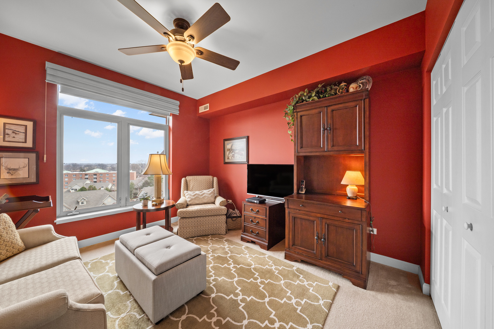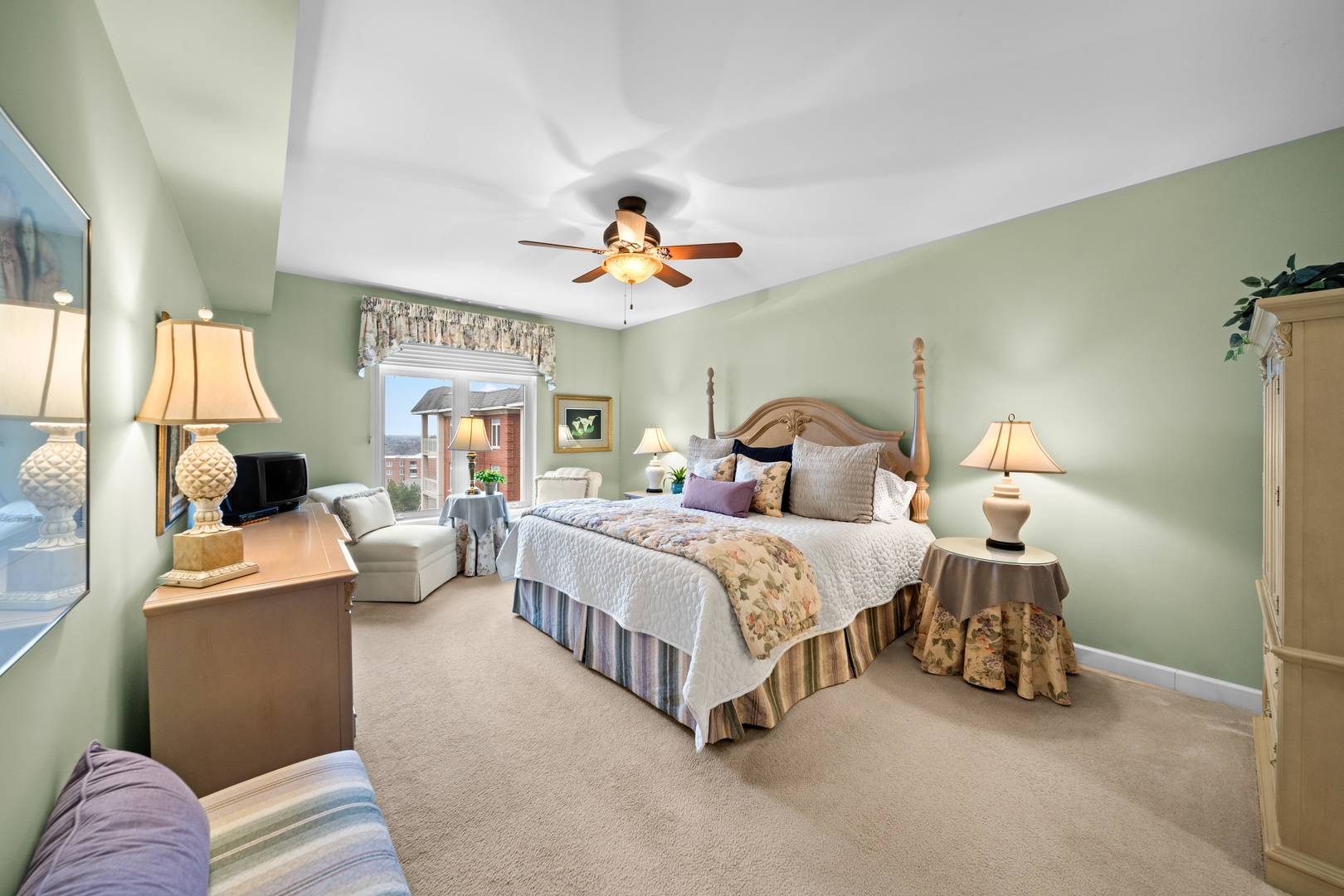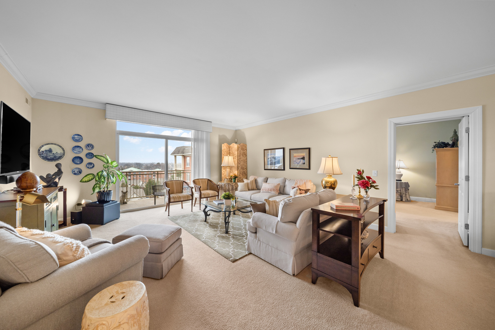 Positioned on the top floor and bathed in natural light, this expansive three-bedroom residence offers a rare blend of scale, privacy, and sweeping views. A gracious entry unfolds into a sunlit living room of impressive proportions, where oversized windows draw the outdoors in and a seamless transition to the private balcony creates a true extension of the living space, ideal for open-air dining or taking in the skyline at dusk. The floor plan flows with intention, anchored by a generously sized dining room and a well-appointed kitchen featuring extensive cabinetry, abundant counter space, and a premium stainless steel appliance suite. Thoughtful details continue throughout, including a dedicated laundry room with additional storage, a rarity that enhances daily ease and exceptional closet capacity at every turn. The primary suite serves as a comfortable retreat, complete with two walk-in closets and a spacious ensuite bath, while bedrooms two and three offer flexibility for guests, work-from-home, or additional living space, all supported by a second full bath. Beyond the residence itself, the lifestyle offering is equally compelling, with two indoor parking spaces, four storage areas, and a well-maintained elevator-served building with welcoming common spaces, party room and a fitness area. Elevated, light-filled, and quietly impressive, this is a home where space, views, and convenience come together in perfect symphony.