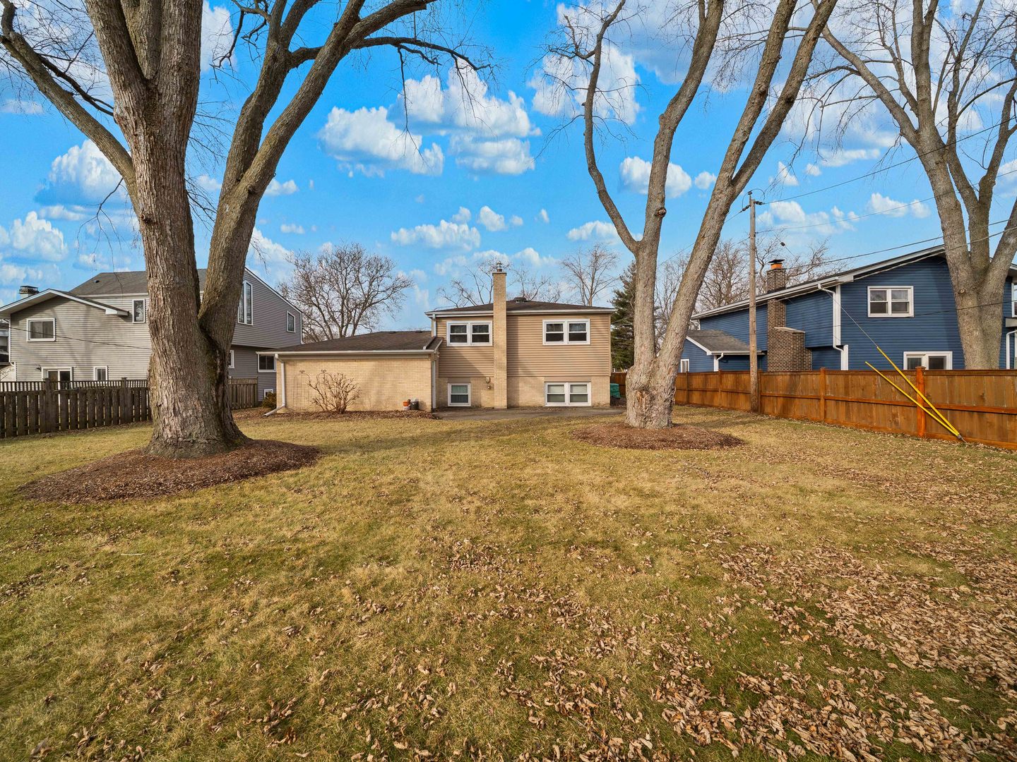 Set along a picturesque tree-lined street, this well-maintained residence delivers smart design, functional space, and the kind of practical updates today's buyers appreciate. The main level opens with a welcoming foyer featuring wood laminate flooring and a guest coat closet-an efficient entry point into a home designed for everyday living. The living room makes an immediate impression with its vaulted ceiling, creating volume and natural light that elevates the entire space. Adjacent, the dining room mirrors that architectural lift with its own vaulted ceiling and is anchored by a wrought iron lighting fixture that adds character and definition. The kitchen is thoughtfully appointed with granite countertops, under-cabinet lighting, a Franke sink, 5-burner oven/range, GE microwave, GE Profile refrigerator, and KitchenAid dishwasher. A door to the side yard offers convenient access for outdoor dining or entertaining, while the layout supports both daily routines and weekend hosting with ease. Upstairs, hardwood flooring runs throughout all three bedrooms, delivering continuity and durability. The primary bedroom offers clean lines, a ceiling fan, and a double-door closet. Bedrooms two and three also feature hardwood floors, ceiling fan fixtures, and generous closet space, providing flexibility for family, guests, or a dedicated office. The hall bath is finished with ceramic tile flooring, a granite-topped vanity, and a shower/tub combination with ceramic tile surround-designed for both function and longevity. A hall linen closet adds practical storage where it's needed most. The lower level expands the living footprint with a recreation room featuring carpeted flooring and classic wood paneling-ideal for a media room, playroom, or additional lounge space. A second bathroom includes Vinyl flooring, a Corian-topped vanity with chrome fixtures, and a Toto commode. The utility and storage room offers additional capacity for organization and long-term storage needs. Outside, the home continues to deliver value with a two-car garage, asphalt driveway, and a concrete patio ready for outdoor gatherings. Mechanical updates provide peace of mind, including a Lennox furnace with Healthy Solutions humidifier (new in 2024), a new 40-gallon hot water heater (2024), and a new liner for the furnace flue. The kitchen was updated in 2005 and the upstairs bathroom in 2007, reflecting ongoing care and thoughtful improvements over time.Just a stone's throw to several parks, schools, shopping and minutes to I-294!