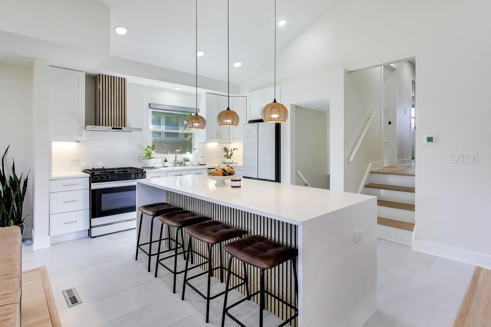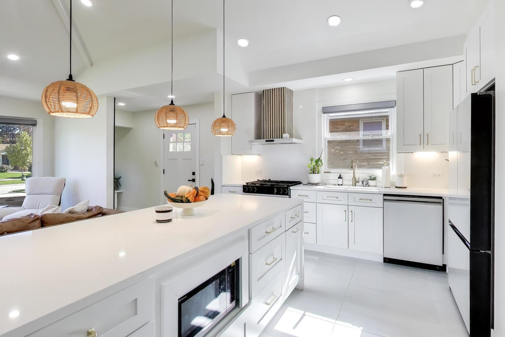 Bigger than it looks! Stylishly Updated 2,700sq ft Split Level w/ Sub Basement near Woodland Park! Open Concept Living at its finest begins in the Foyer w/ Sleek Accent Wall, Bench & Cubbies that open to the Living / Dining Room with Hardwood Flooring, Vaulted Ceilings & Endless Recessed Lighting that bring all spaces into one. The Kitchen is a showstopper offering 42" White Shaker Cabinetry, Quartz Counter Tops & Backsplash, Gold Hardware & Fixtures, Samsung Bespoke Kitchen Package, Porcelain Tile Floors and massive Waterfall Island ideal for Entertaining. The Primary Bedroom offers double closets with private ensuite sectioned by frosted glass. White Shaker Vanity, Quartz Counter Tops, Stand-Up Rain Shower with Gold Fixtures, Hardware, and Pendant Light round out the room. 2nd & 3rd Bedrooms include ample closets that share the Fully Upgraded Hall Bath with a Double-Vanity, Quartz Counter Top, White Tub, Gold Fixtures and Porcelain Tile carried throughout. Trekking down to the Family Room- the huge room includes an Electric Fireplace with navy Herringbone Shiplap Design, Wet Bar w/ Quartz Counter Top, Beverage Cooler, Recessed Lighting Back Yard / Garage Access with a Walk-Out Door plus a Full-Sized Bath that's impeccably designed for guest use. 4th Bedroom can easily be added as well. Rounding out the Floorplan is the Sub-Basement that includes extra space for any use: Play Room, Rec Room, In-Home Gym, Study, etc. Luxury Vinyl Plank Floors, Black Exposed Ceilings, Can Lights and the Laundry Room that houses the Samsung Front Loader Washer & Dryer and a Utility Sink. 2-Car Detached Garage, Private Fenced Yard, and Patio Area complete the property. Minutes to Woodland Park with Soccer, Pickleball, Basketball Courts plus impeccable School Districts just blocks from Franklin & Emerson Schools. 5 min drive to Downtown Park Ridge / choice of 2 Metra Stops, and Highway Access! Nothing to do but move in!